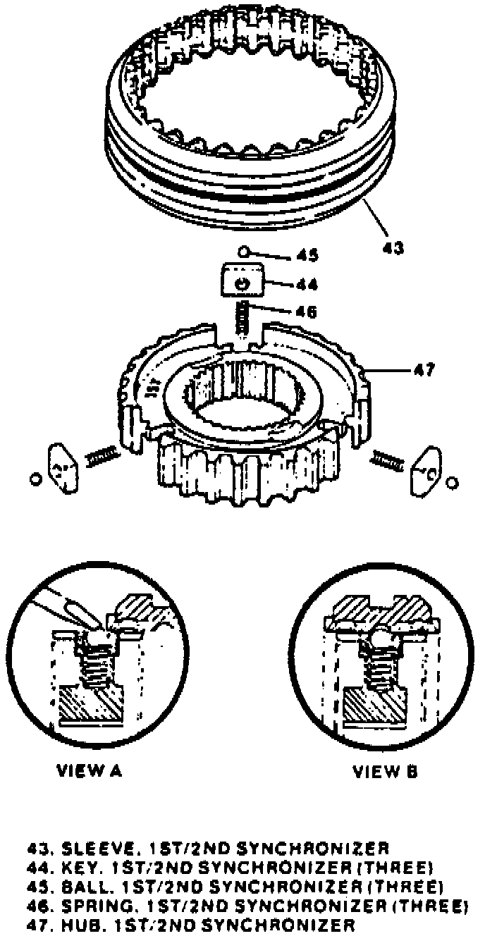 Refer to Figs. 19 through 21 for synchronizer assemblies.