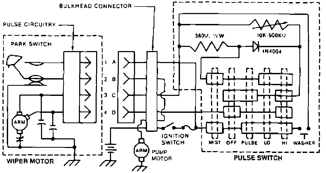 Fig. 2 Wiper/Washer Wiring Circuit (Pulse):