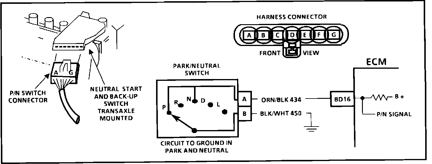 If CKT 434 indicates P/N (grounded), while in drive range, the EGR would be inoperative, resulting in possible detonation.