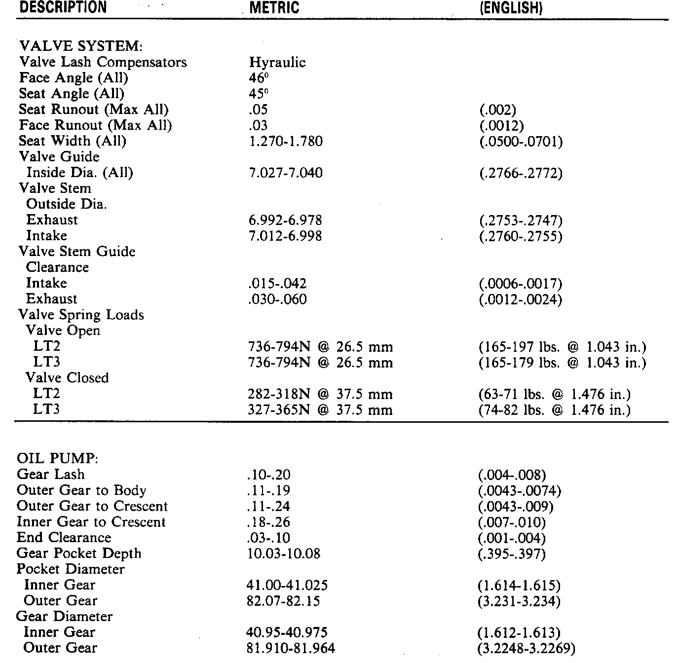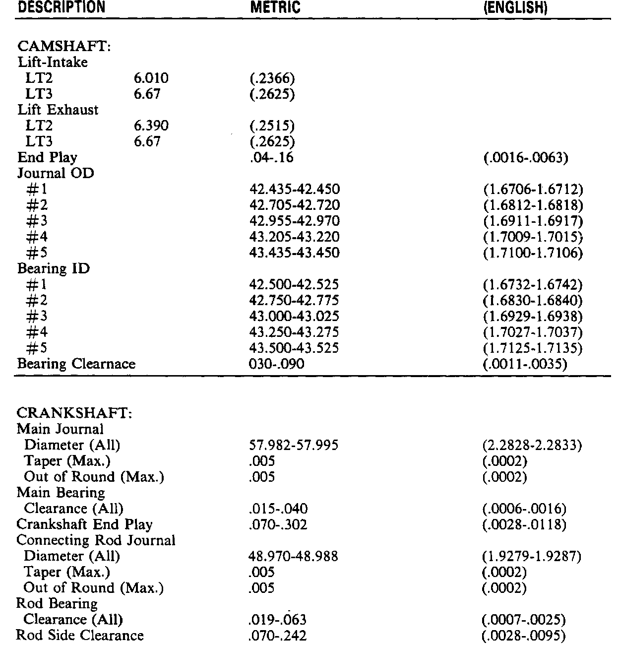 Engine Specifications: