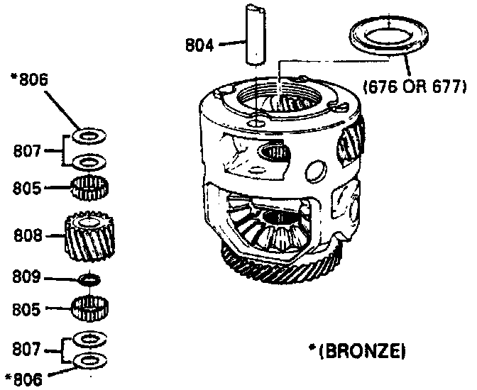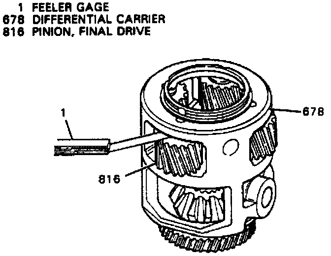 2. Check final drive endplay as shown. If endplay is not within 0.009 - 0.025 inch; then replace washers (806/807) shown.