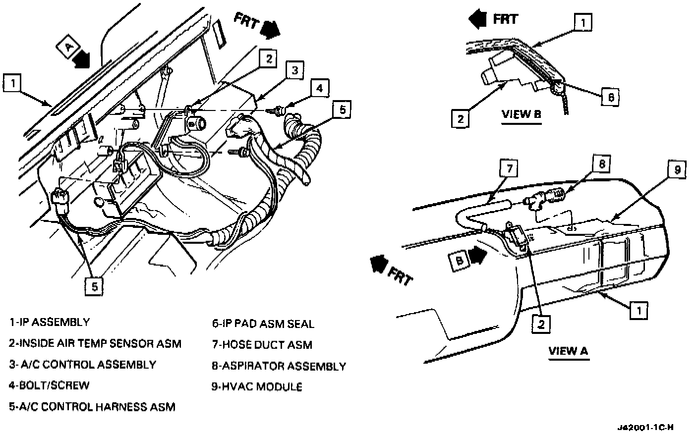 Refer to image to service the Inside Air Temperature Sensor Assembly. Follow steps numbered in the squares.