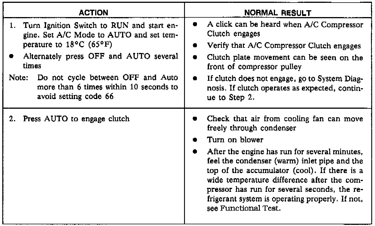 - Complete the Functional Test as a guide to normal operation of the A/C System. Testing and Inspection