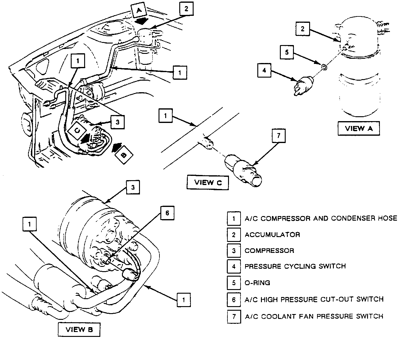 TIP: The pressure cycling switch is mounted on a Schrader-type valve. It is not necessary to recover the refrigerant from the A/C system to replace this switch.