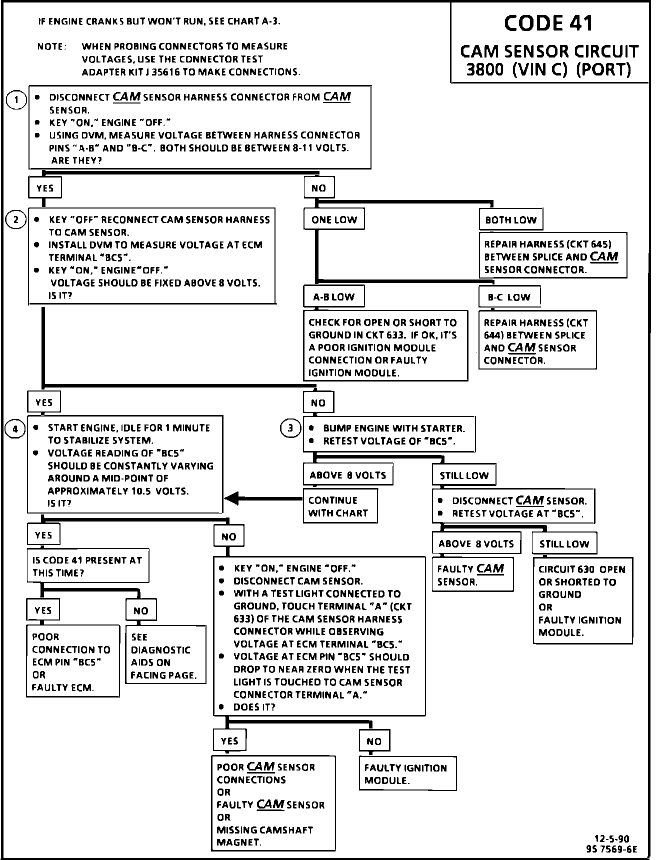 This bulletin updates the Code 41 Diagnostic Chart and Facing Page in "Driveability And Emissions" Section 6E3 for 3800 (VIN C) equipped 1988-1991 Bonneville models.