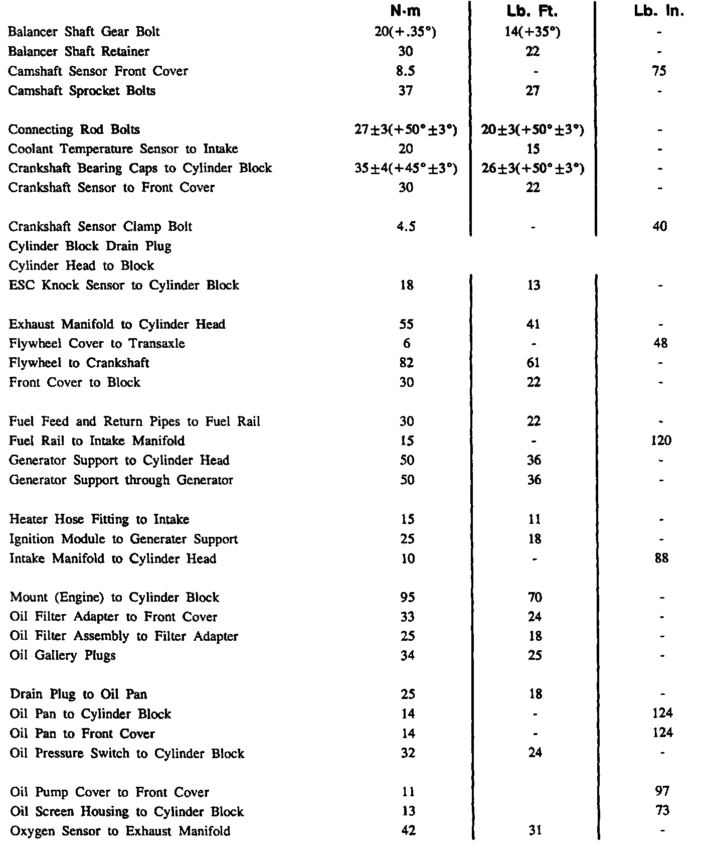 Continued Torque Specifications: