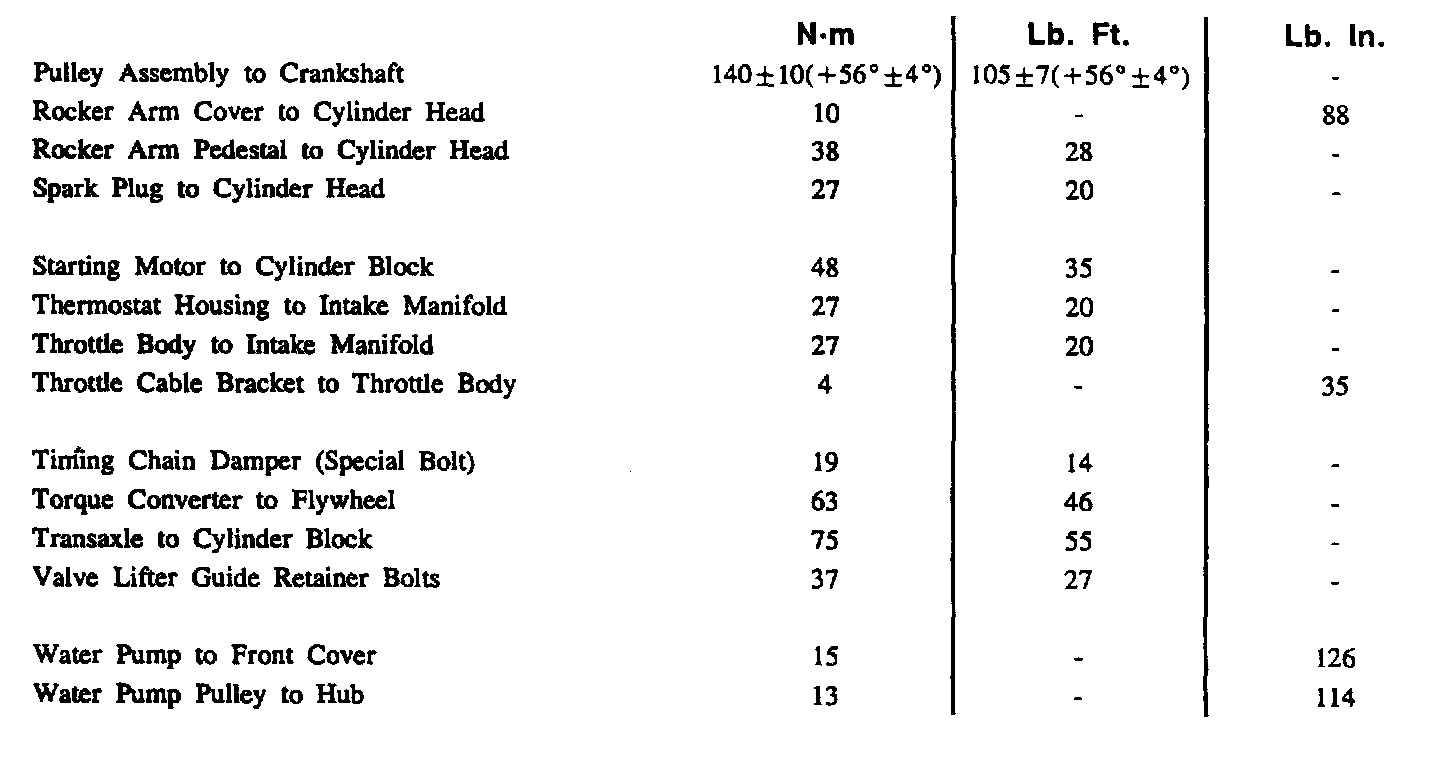 Torque Specifications: