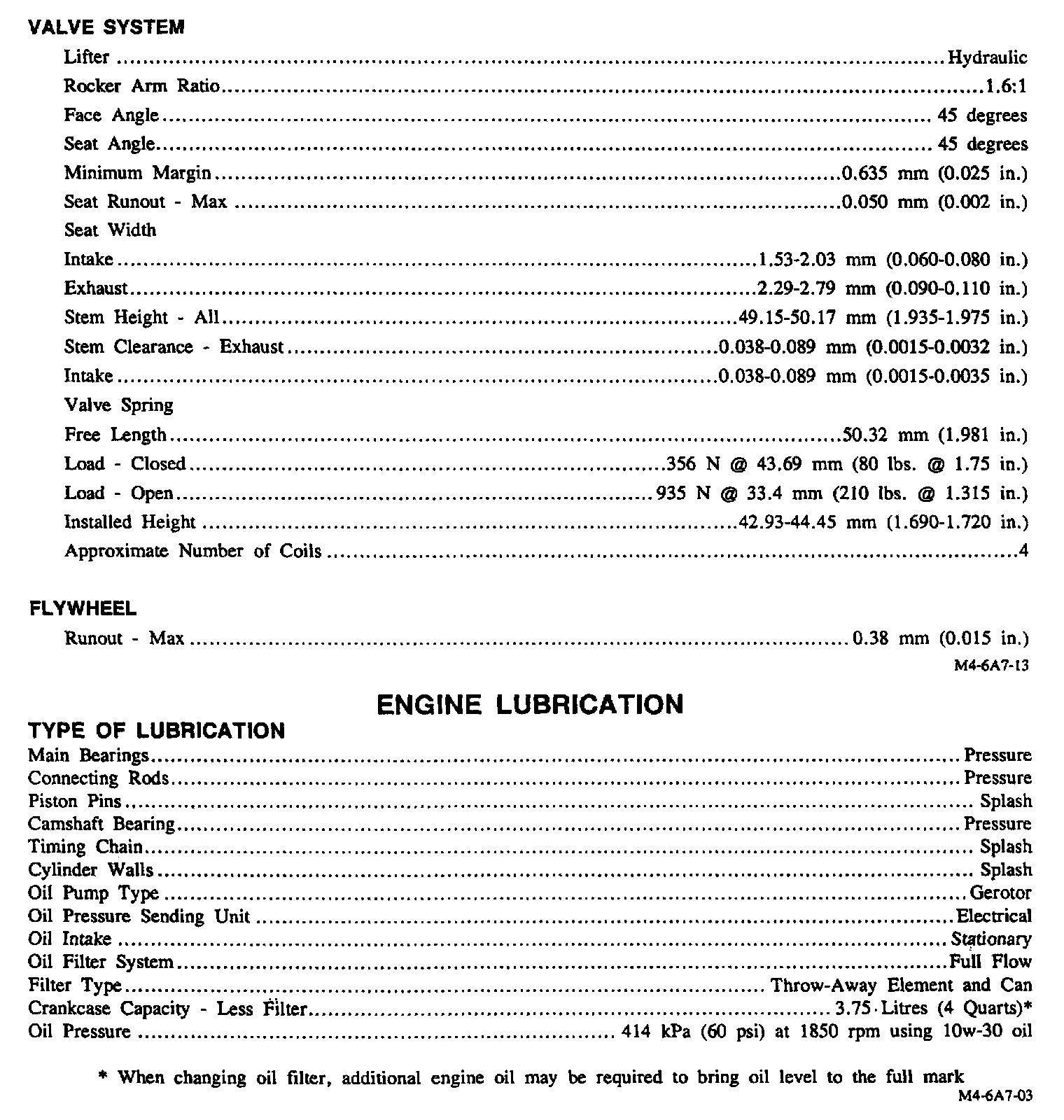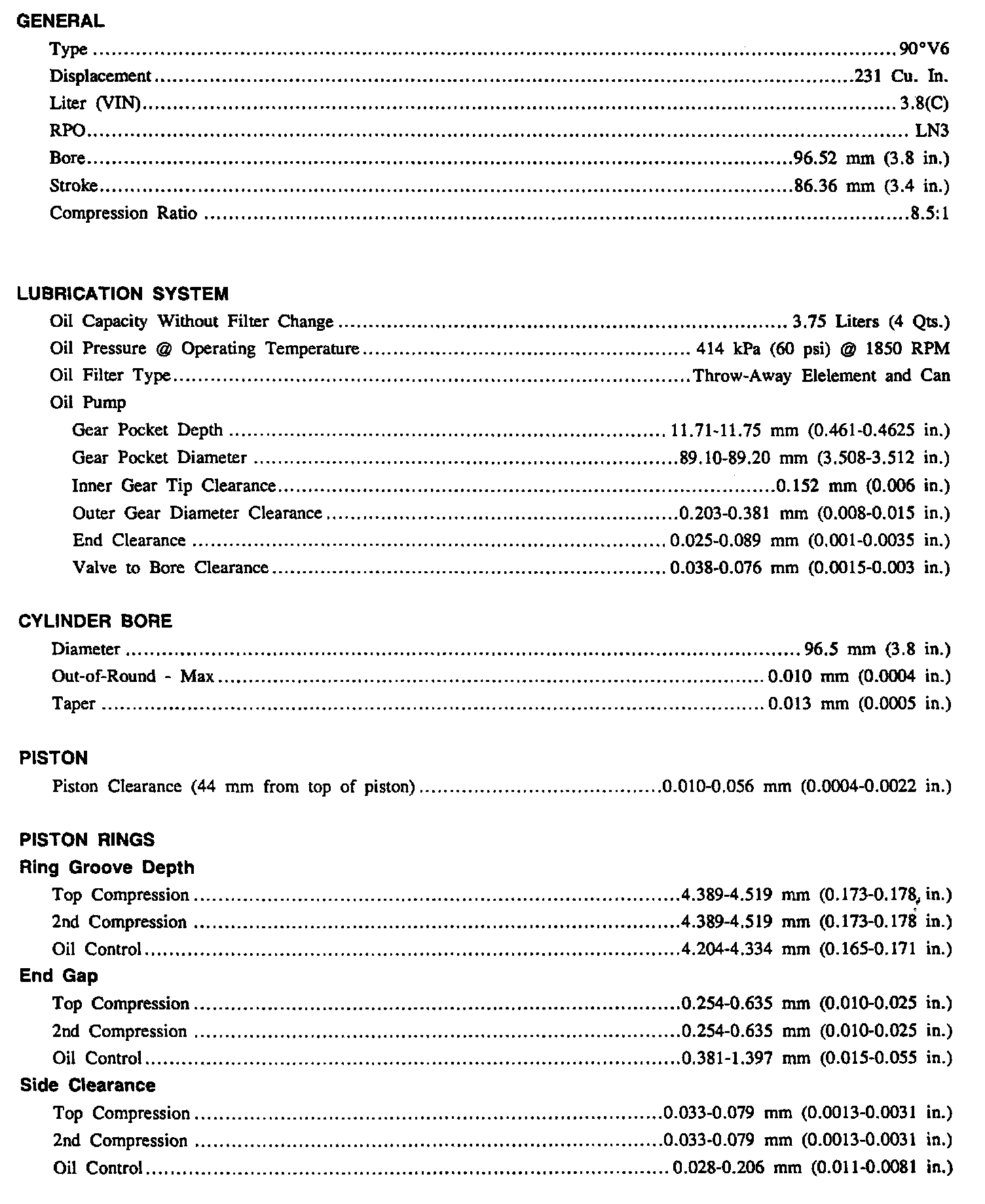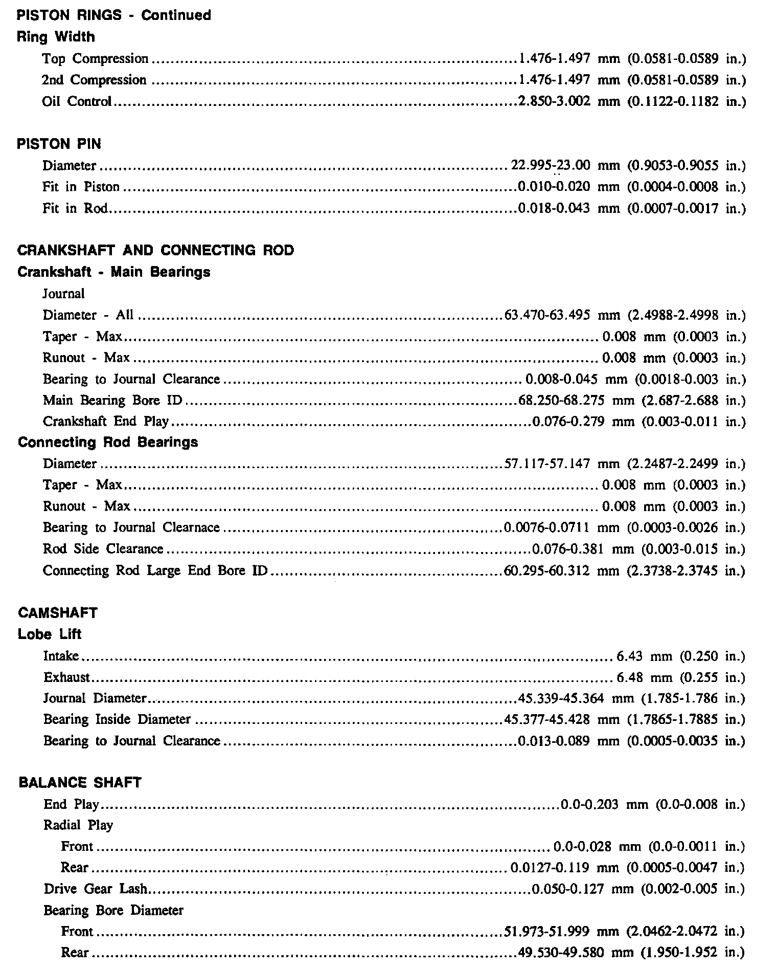 Continued Engine Specifications: