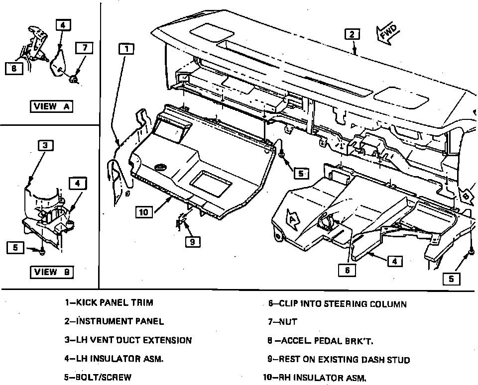 11. Remove instrument panel trim pad and hush panels, Figs. 154 through 157.