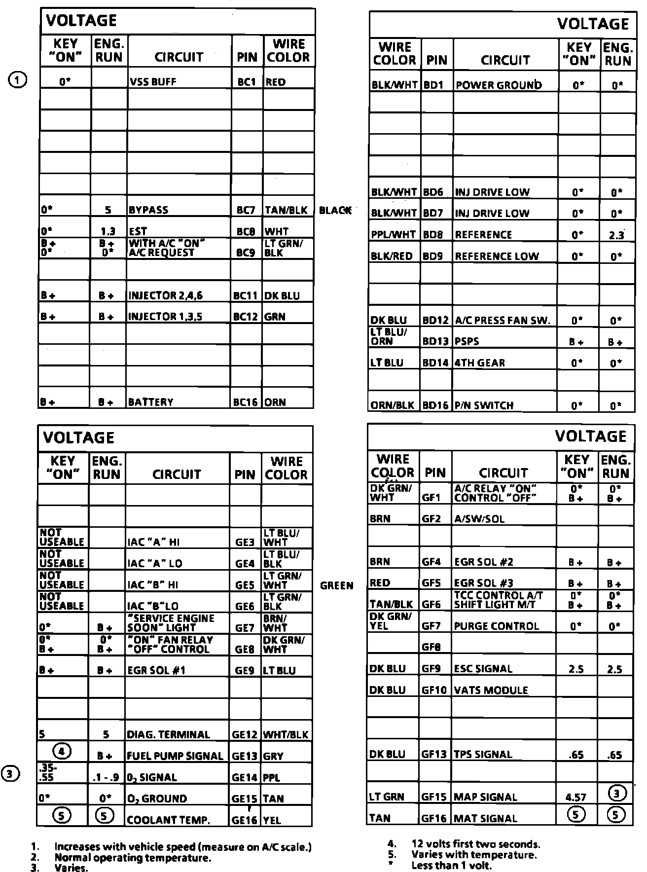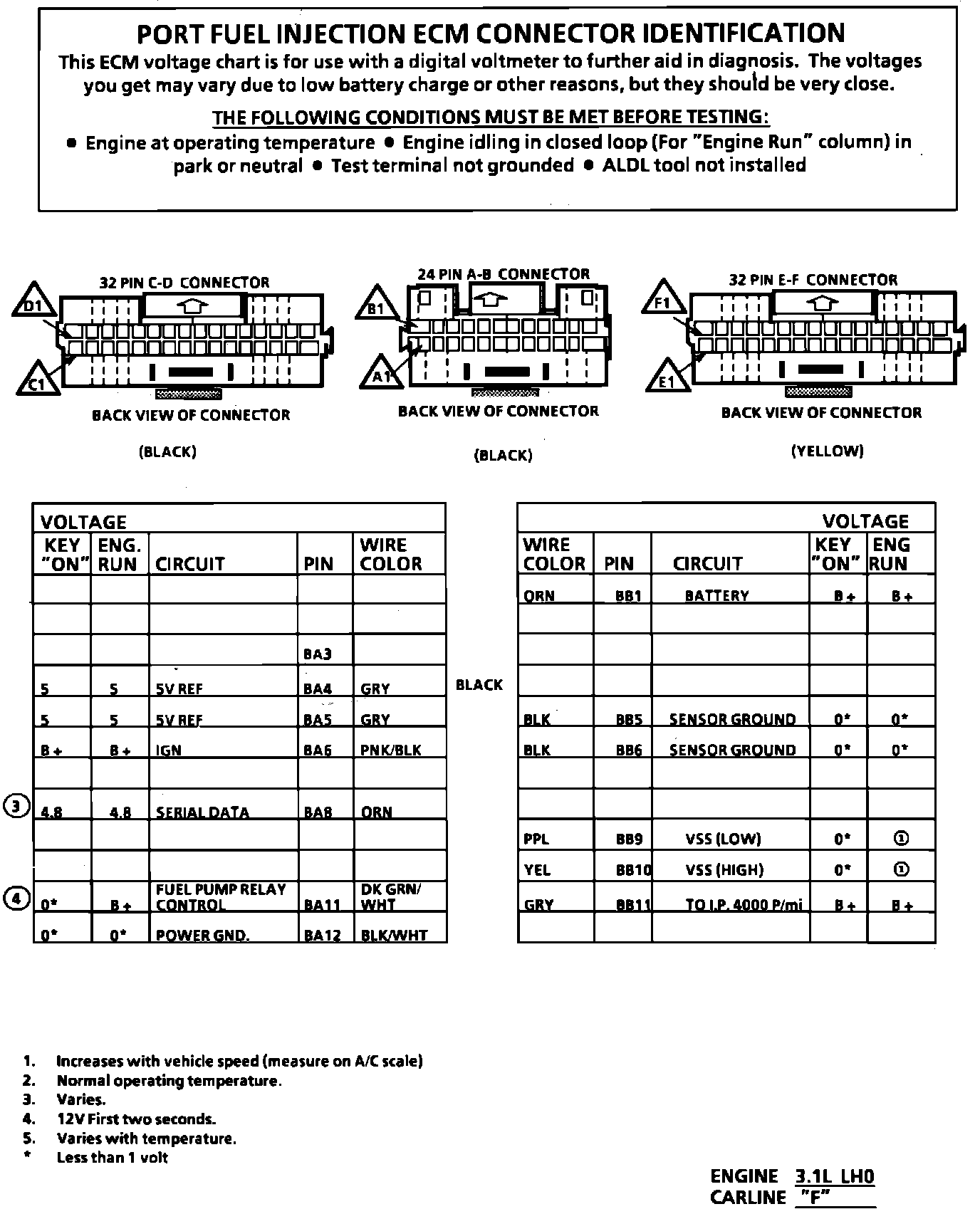 ECM Connector Terminal Identification (Part 1 Of 2):