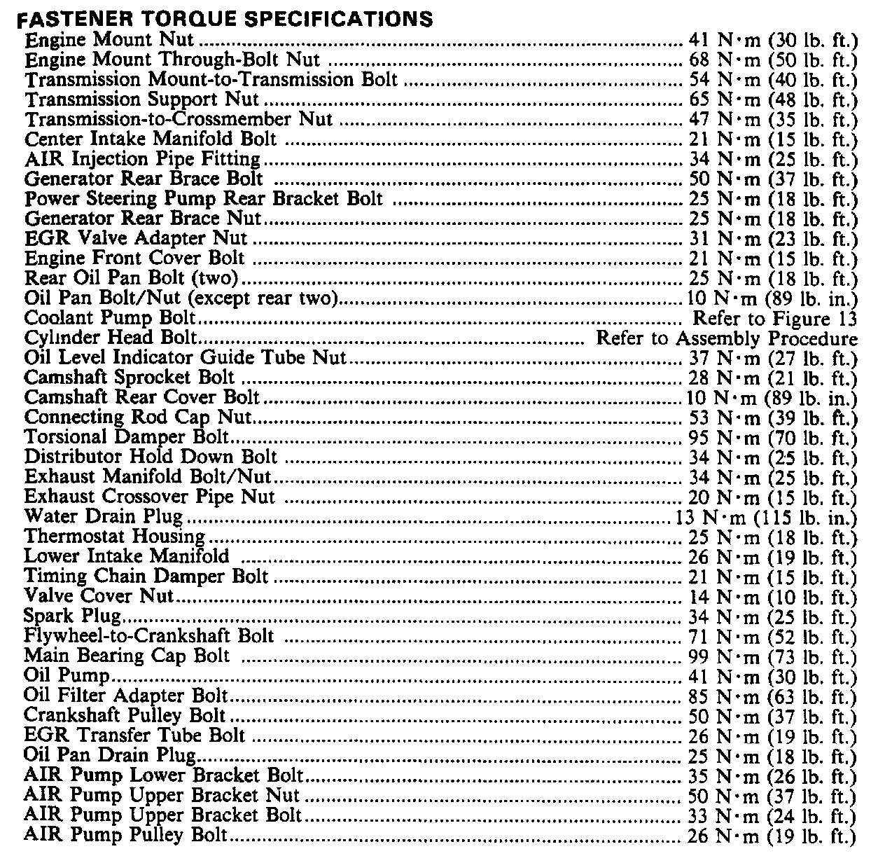 Torque Specifications: