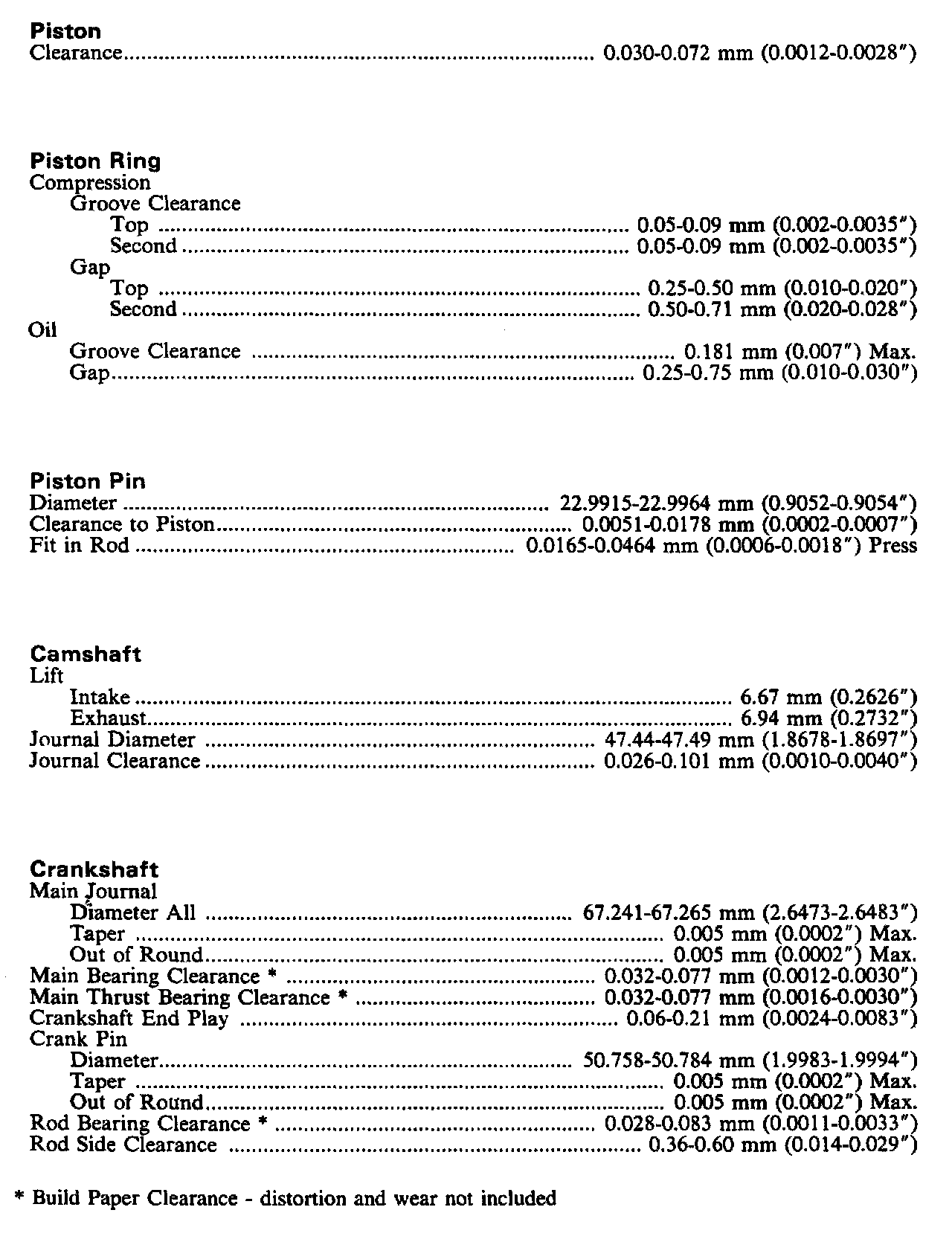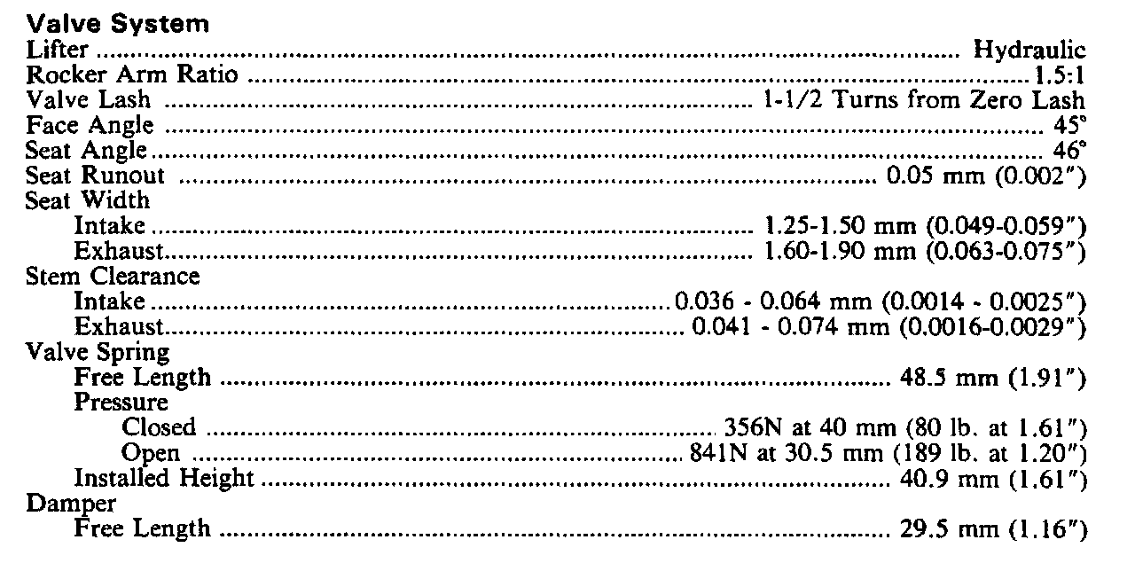Continued Engine Specifications: