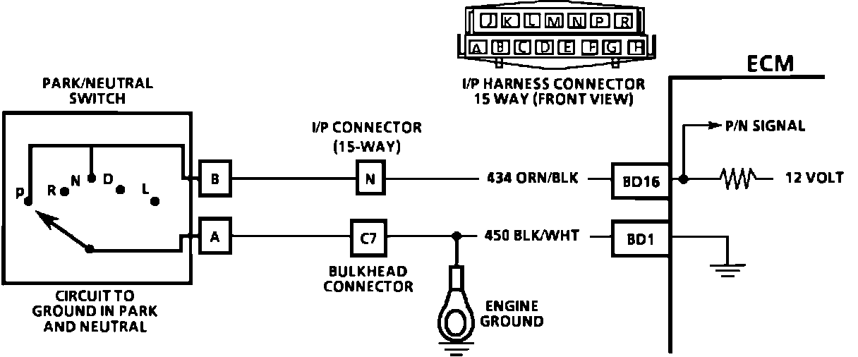 1. Checks for a closed switch to ground in park position. Different makes of "Scan" tools will read P/N differently. Refer to operators manual for type of display used for a specific tool.