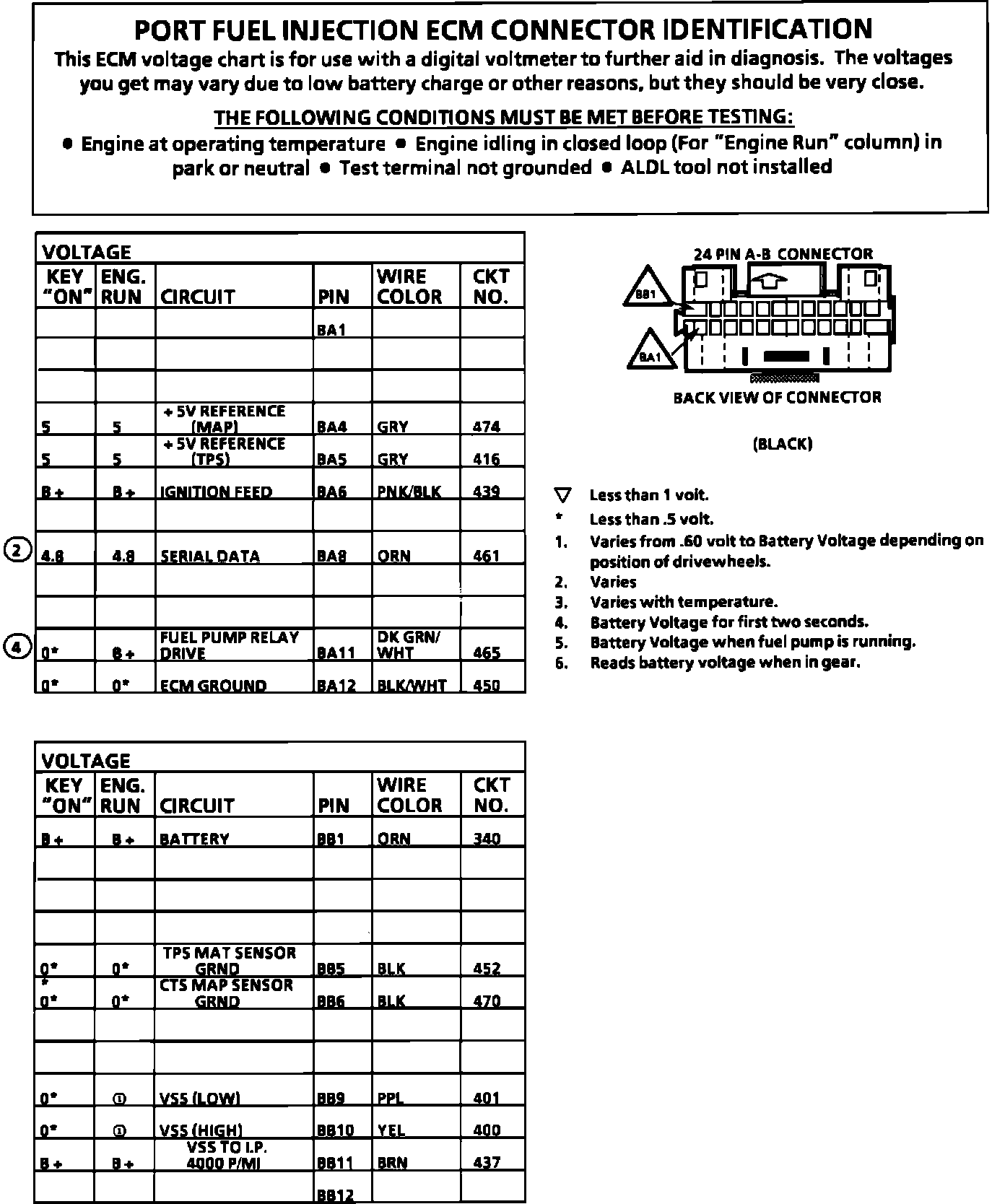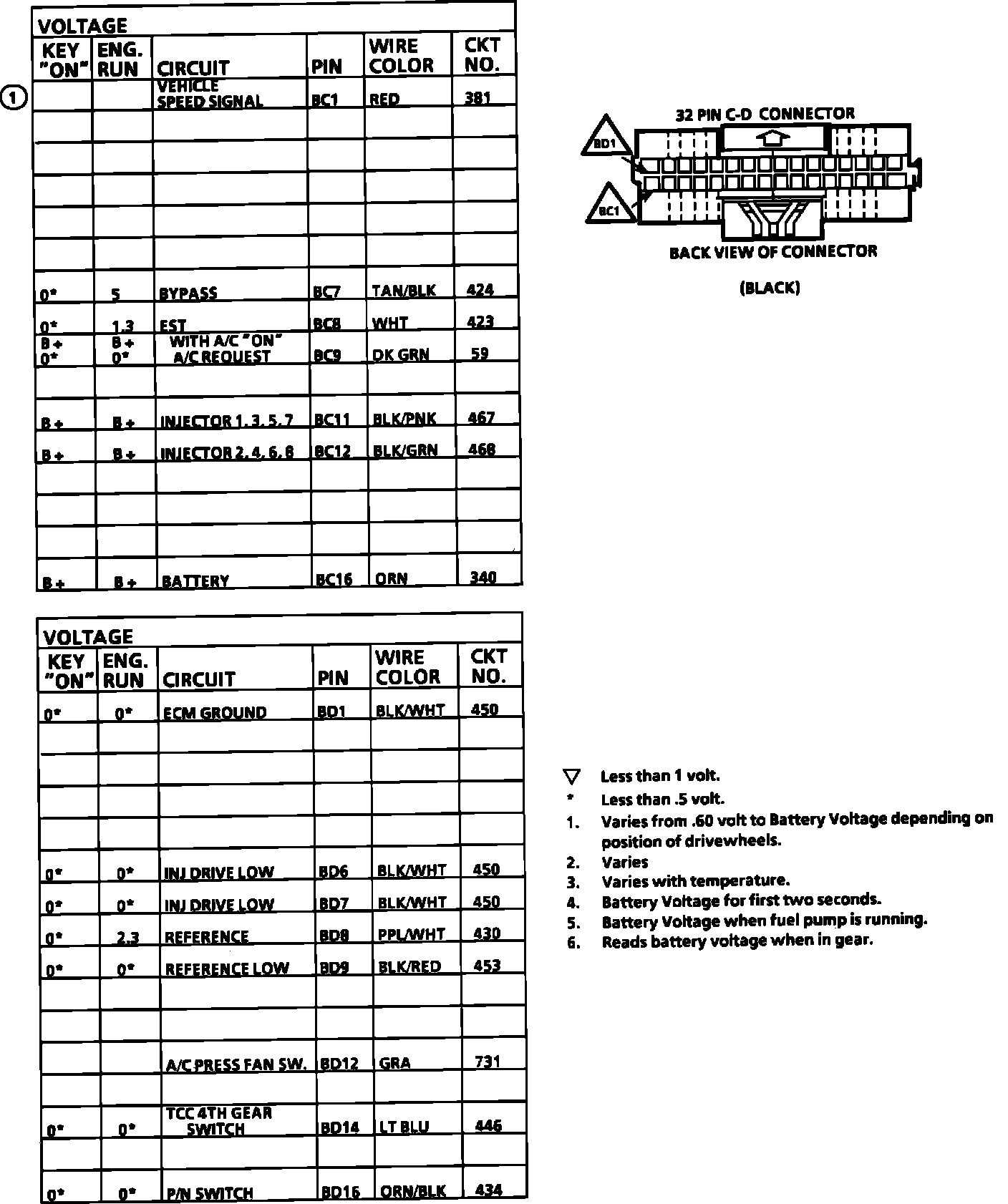 ECM Connector Terminal Identification And Voltage Specification (Part 1 Of 3):