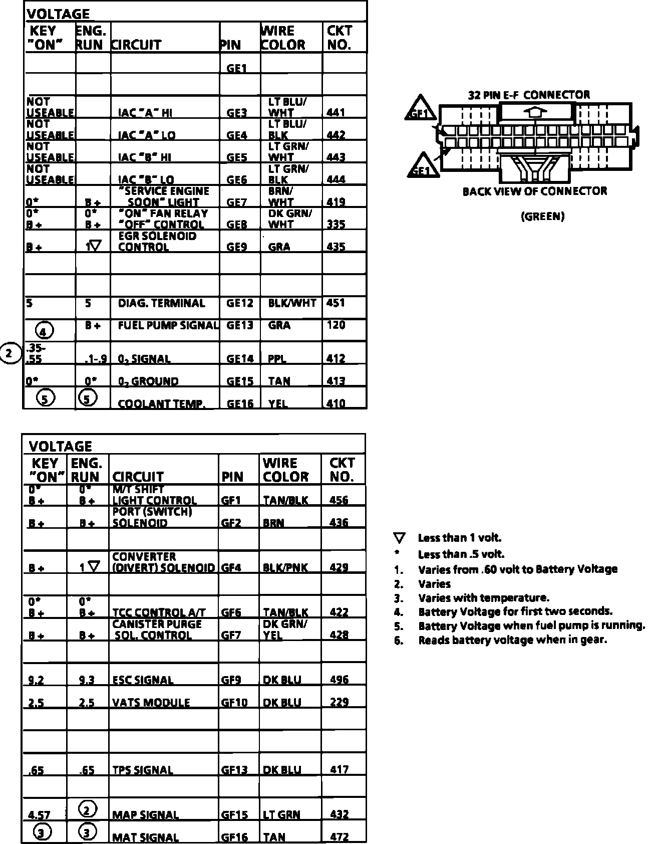 ECM Connector Terminal Identification And Voltage Specification (Part 2 Of 2):