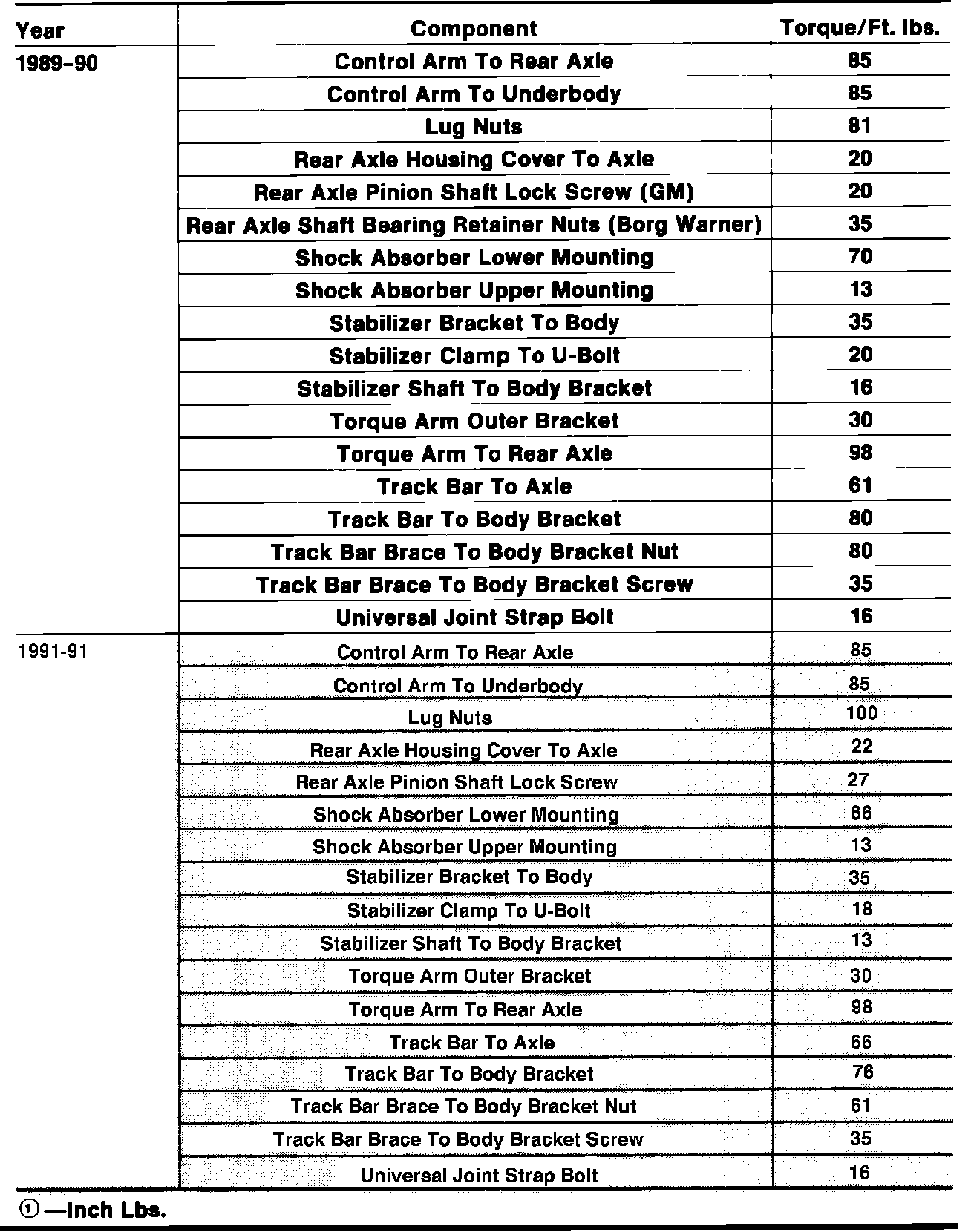 Tightening Specifications:
