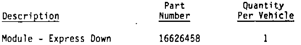 5. Install the new express down module, P/N 16626458, by positioning the module to the mounting bracket and sliding into position until the release tab locks into position.