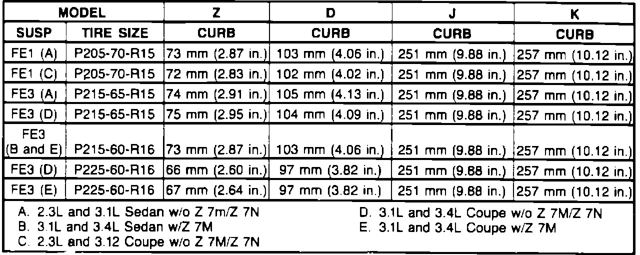 Fig. 12 Ride Height Specification Chart. 1991 Grand Prix: