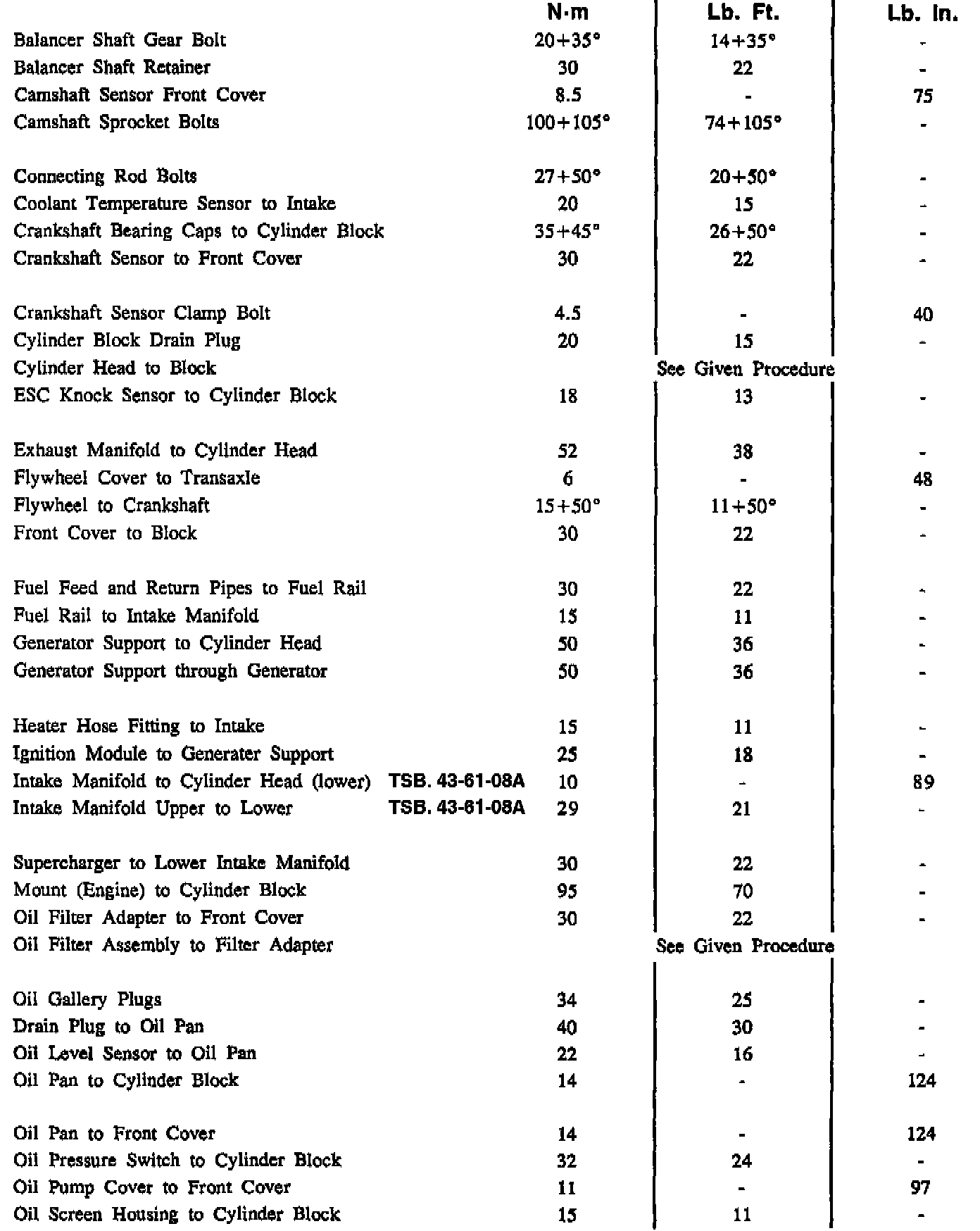 Torque Specifications: