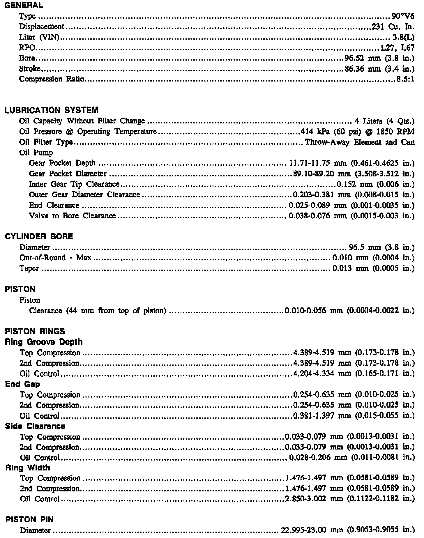 Engine Specifications: