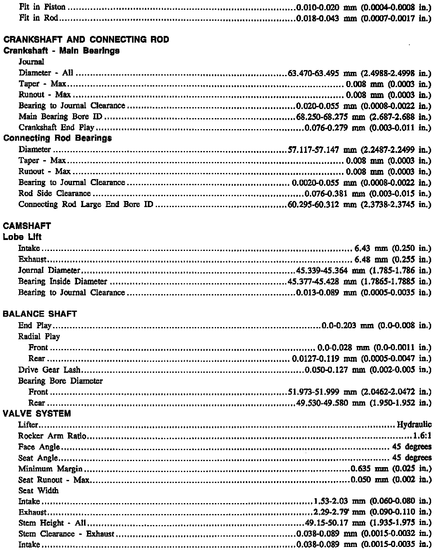 Engine Specifications (continued):