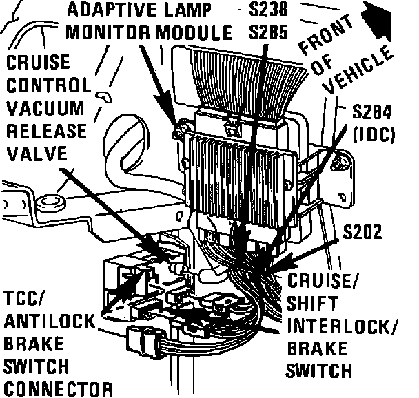 Behind LH Side Of I/P, RH Side Of Steering Column Support
