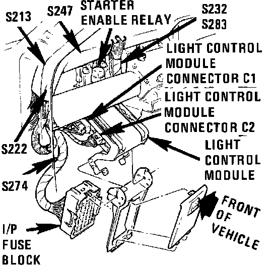 Component Location View. Behind LH Side of I/P, Left of Steering Column: