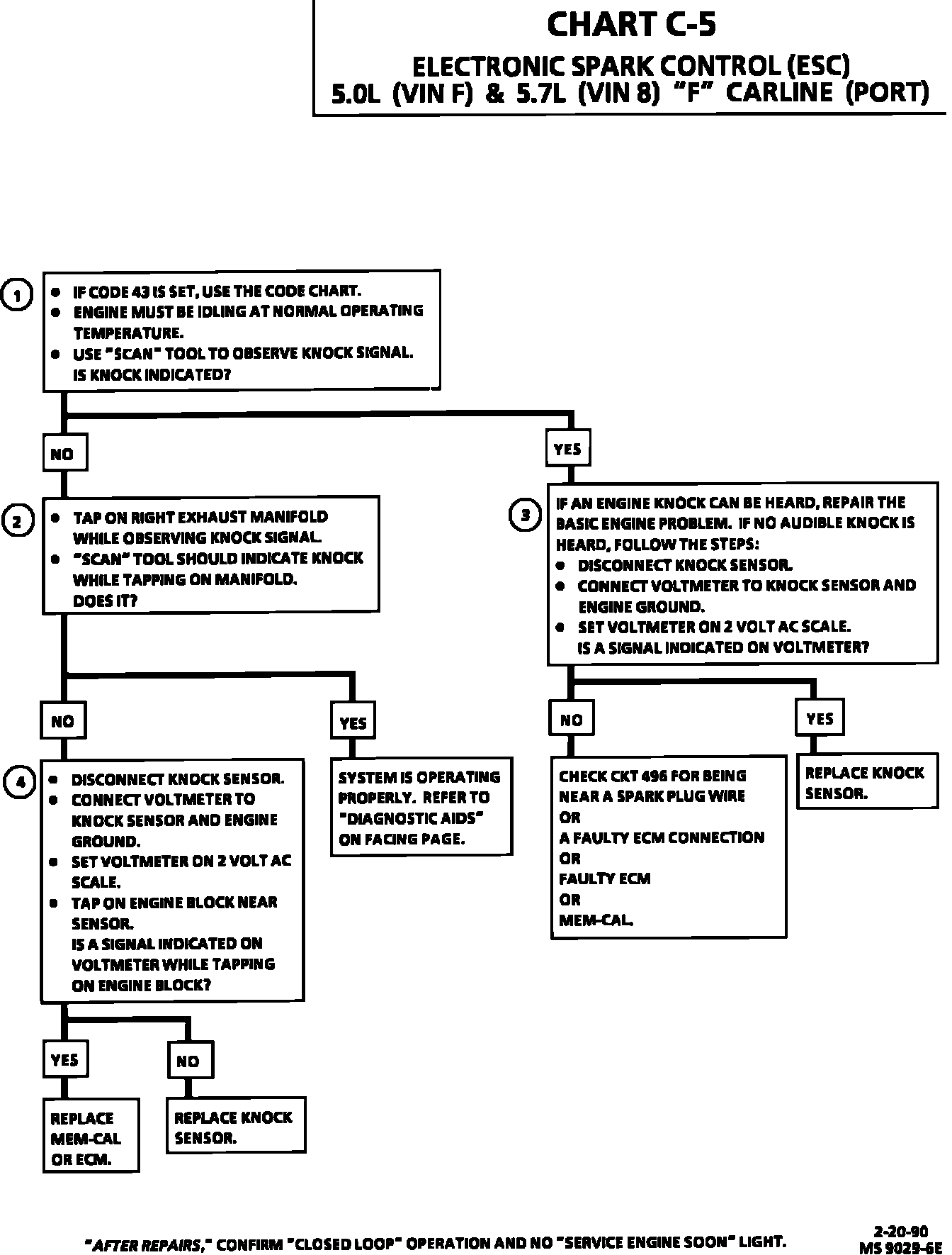 4. This test determines if the knock sensor if faulty or if the ESC portion of the MEM-CAL is faulty. If it is determined that the MEM-CAL is faulty, be sure that it is properly installed and latched into place. If not properly installed, repair and retest.