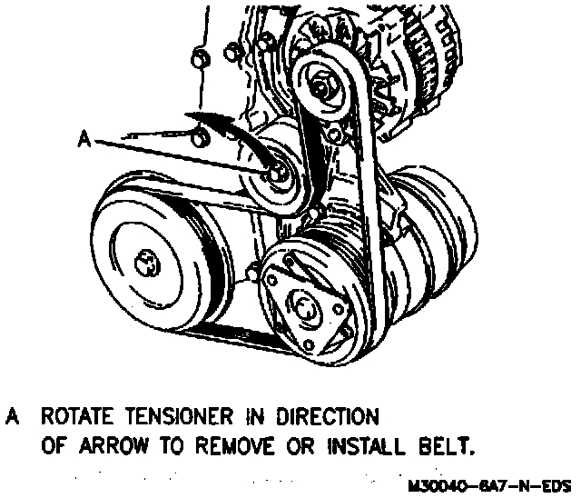 ^ Remove or install the serpentine drive belt by rotating tensioner as shown in the illustration.