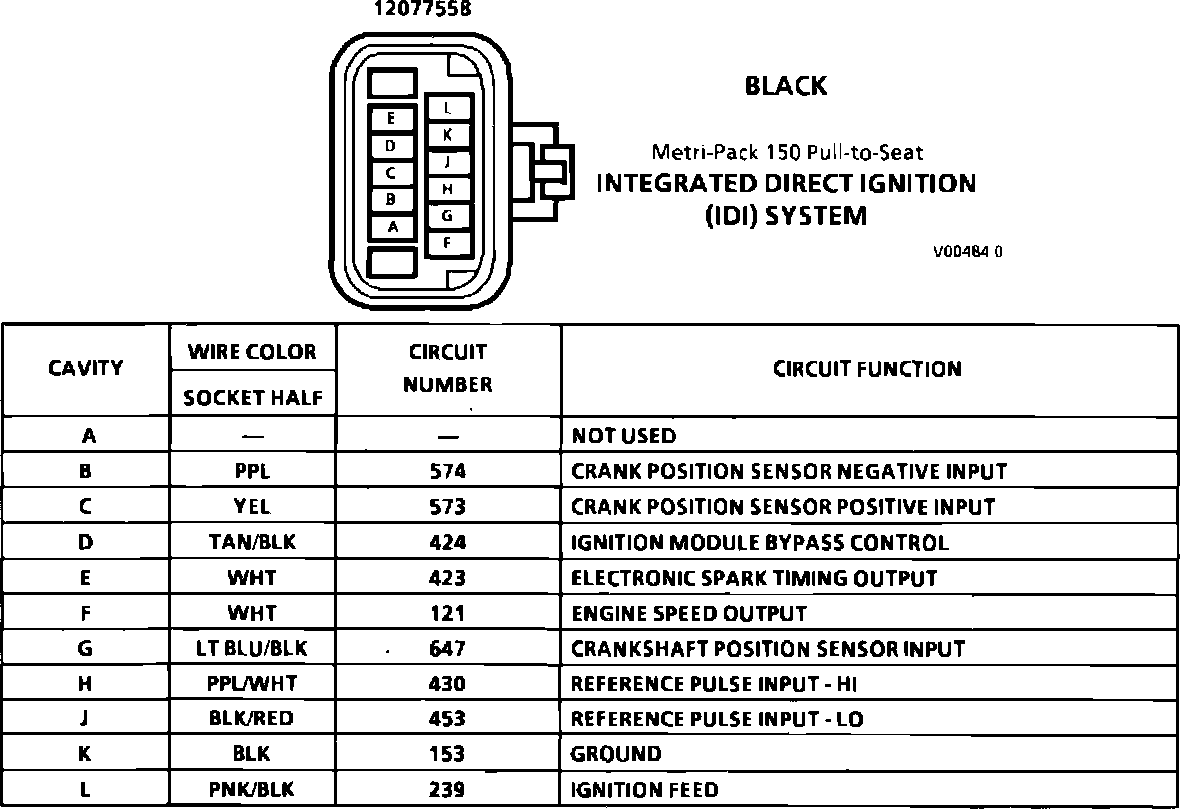 Integrated Direct Ignition (IDI) System Connector Face: