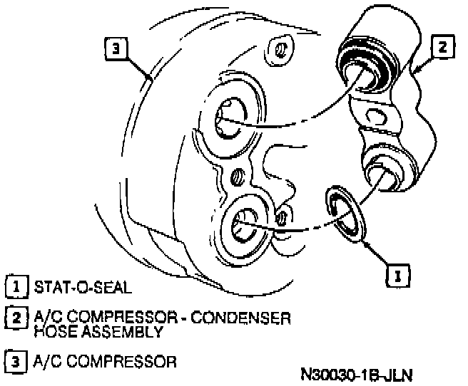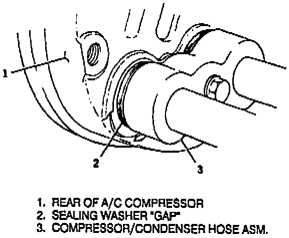 6. Compressor/condenser hose assembly from compressor and discard sealing washers.