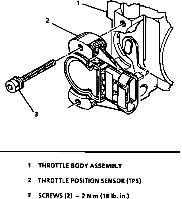 1. With throttle valve in the normal closed idle position, install Throttle Position (TP) sensor on throttle body assembly, making sure TP sensor pickup lever is located ABOVE tang on throttle actuator lever.