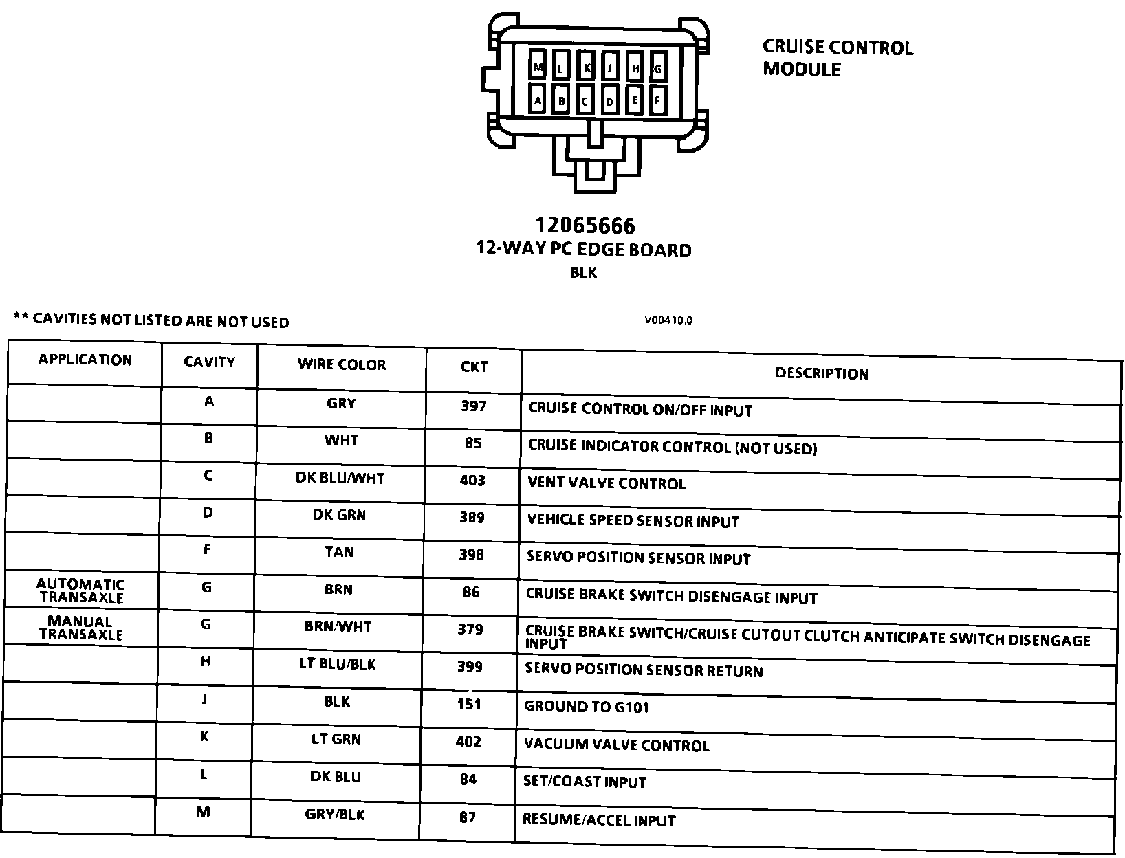 Cruise Control Module Connector Face: