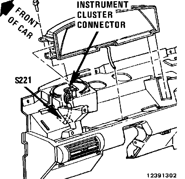 I/P harness, approx. 14 cm from instrument cluster