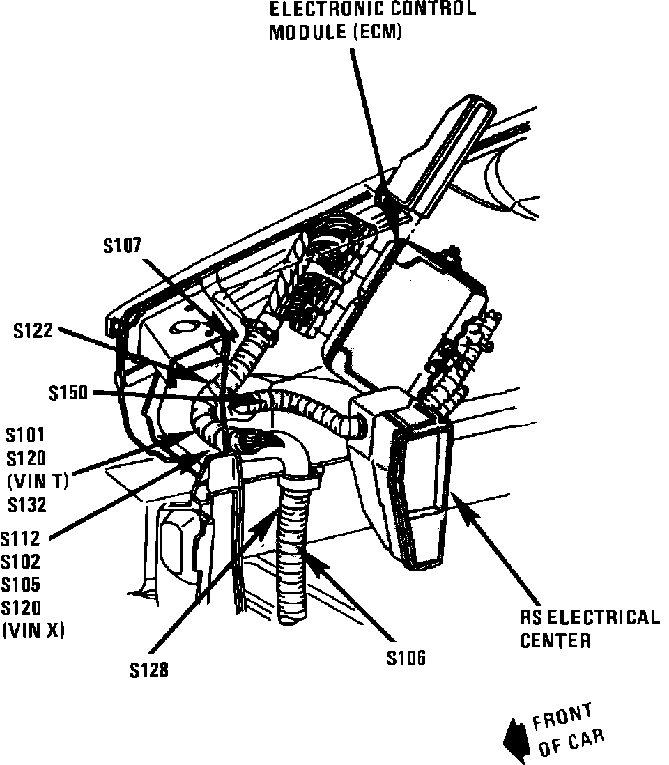 RH Front Of VIN T Engine Compartment (VIN X Similar):