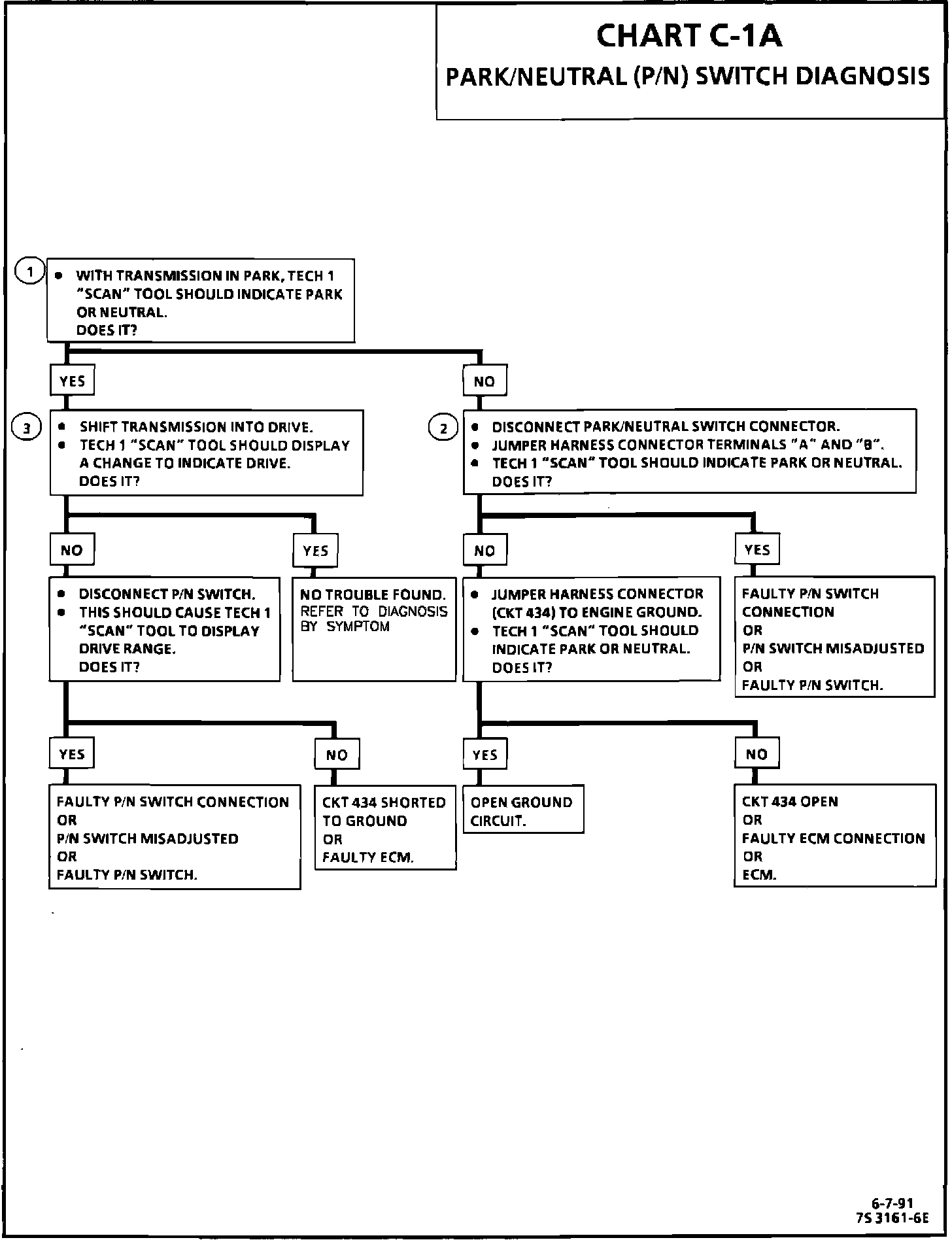 Chart C-1A, Park/Neutral Switch Diagnosis: