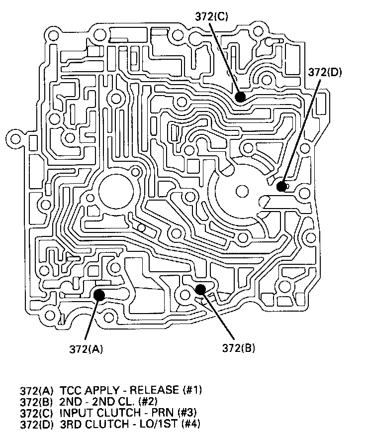 107. Apply approximately 90 psi air pressure to passage 2, to check for proper application of 2nd clutch.