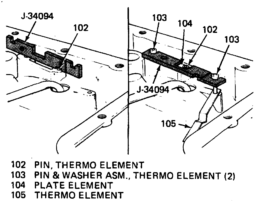 c. Set thermo pin height using tool No. J-34094 or equivalent, then install element plate