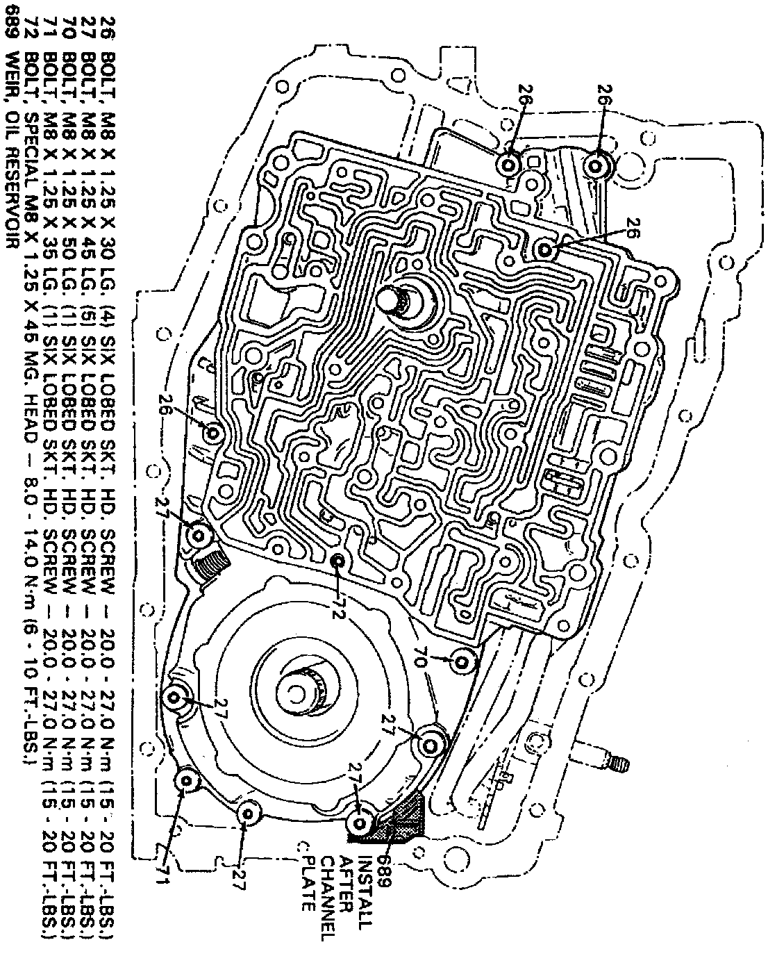 146. Install channel plate retaining bolts as shown, then torque to specifications.
