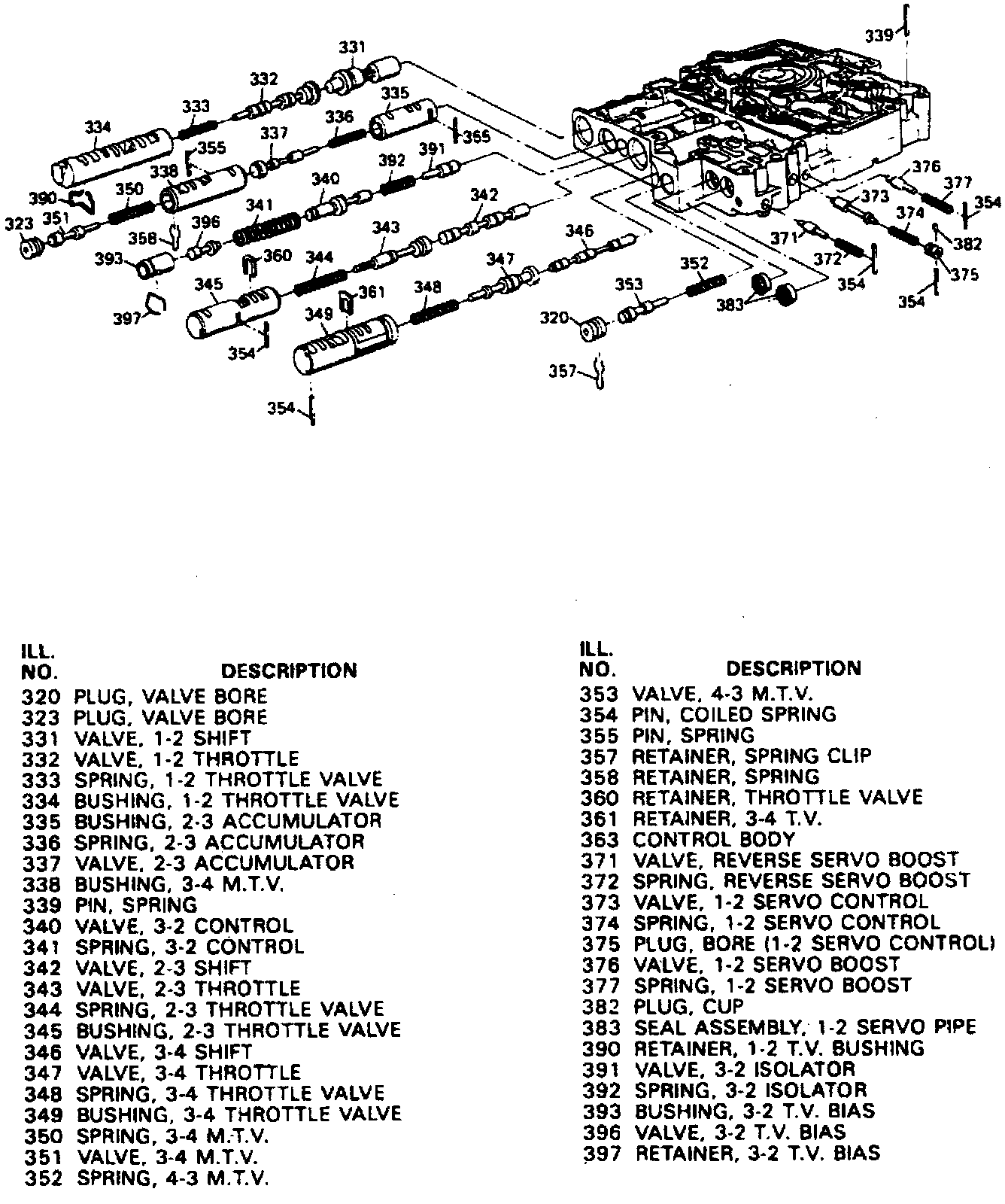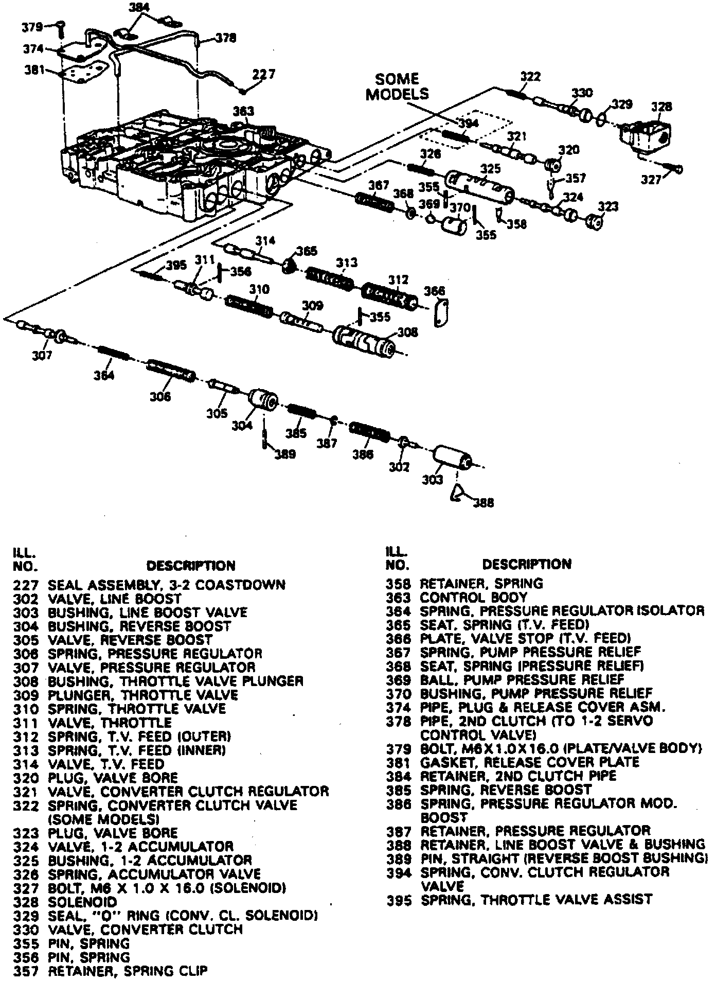169. Remove pivot pin, roll pin, then the 3-2 coast down valve, spring and bore plug.