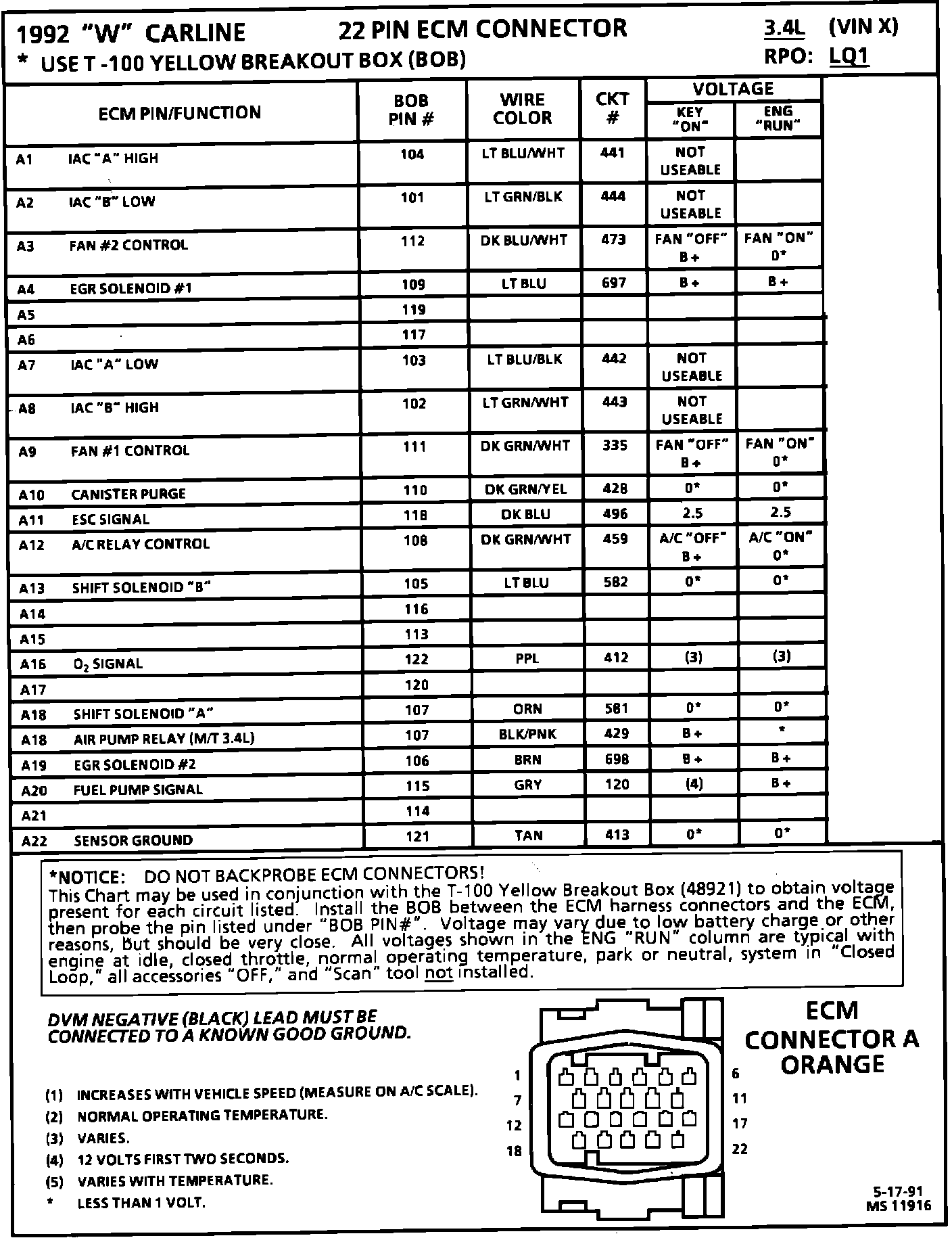 Control Module Connector ID And Pin/Voltage Reference Chart (3 Of 4):