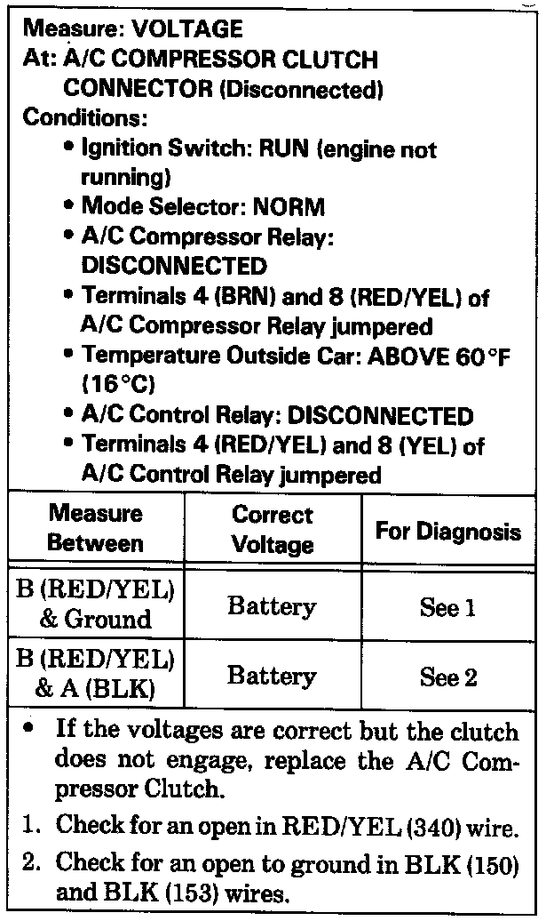 Test B: A/C Compressor Clutch Test: