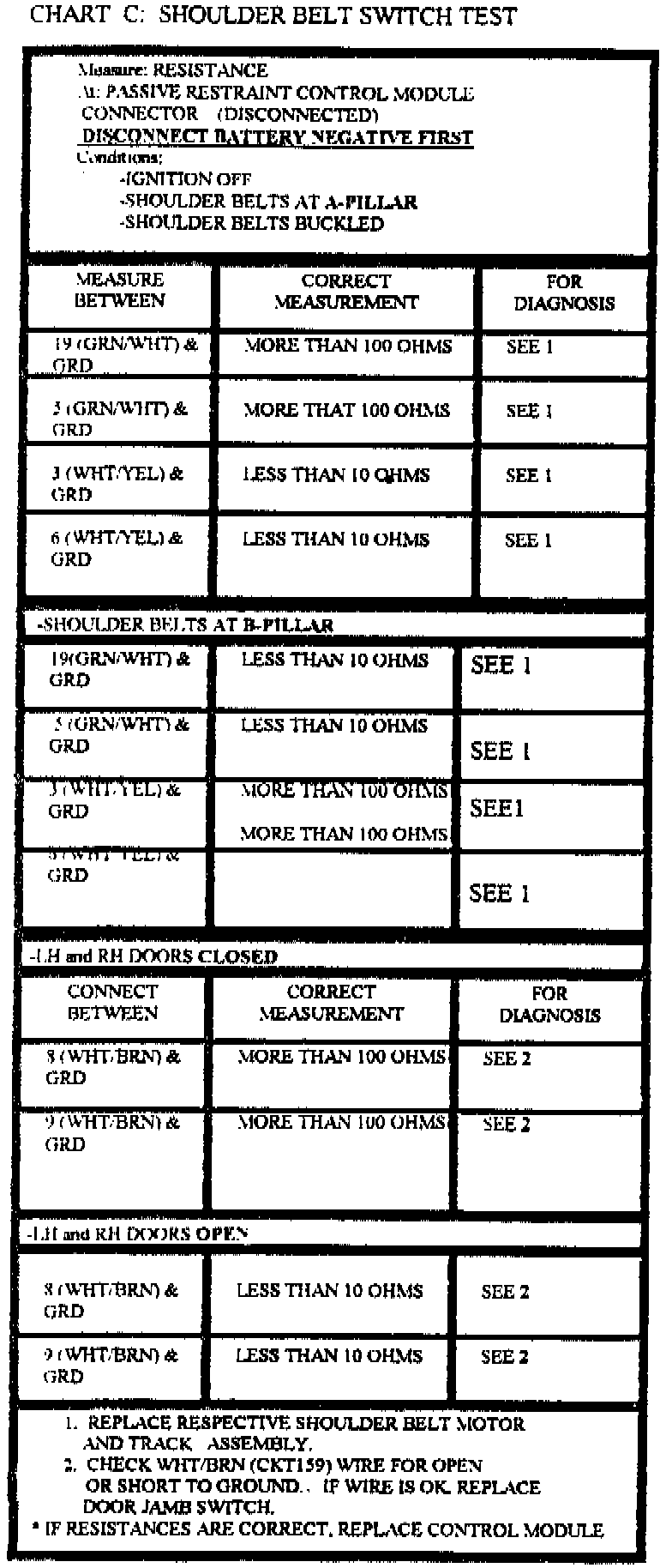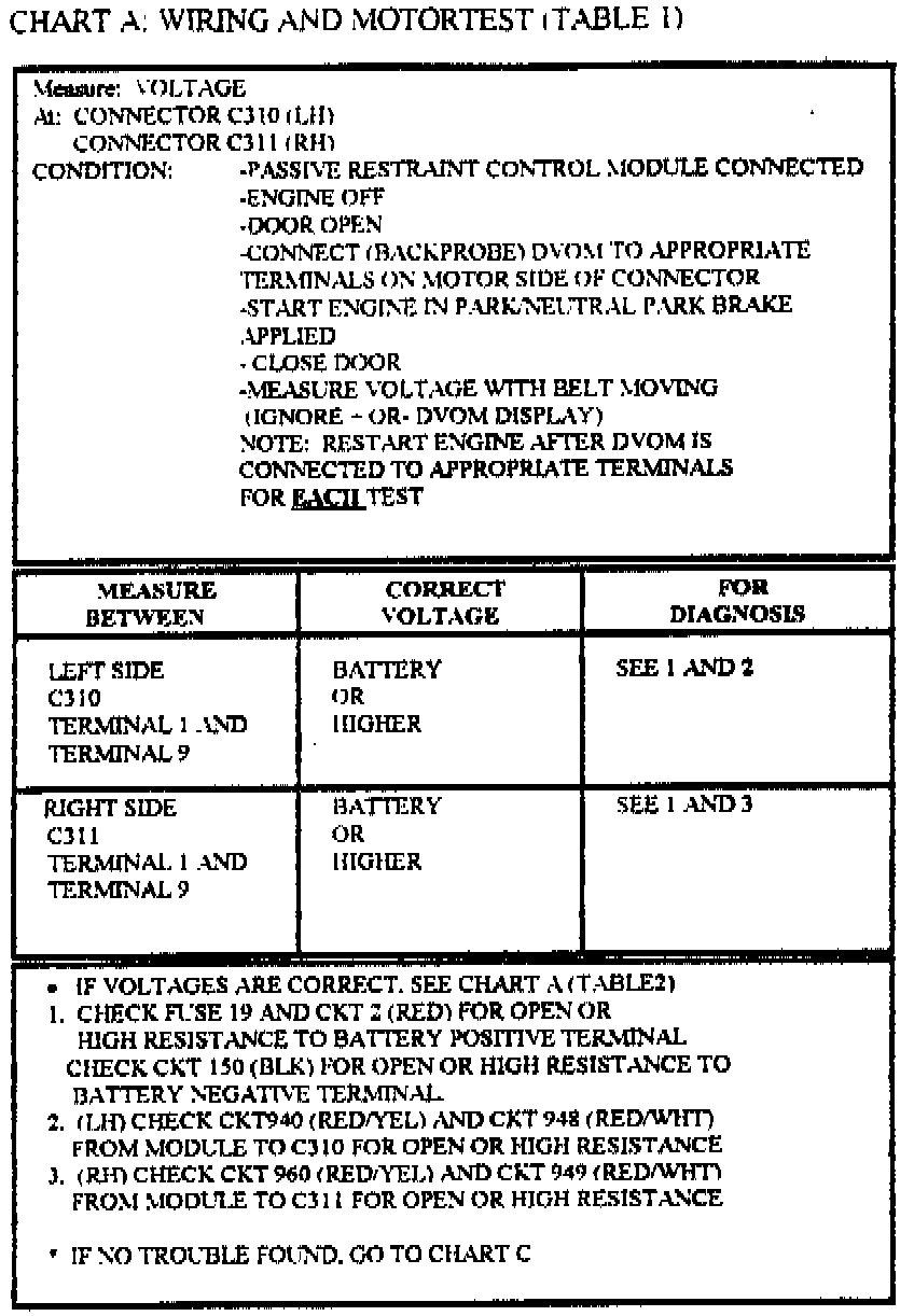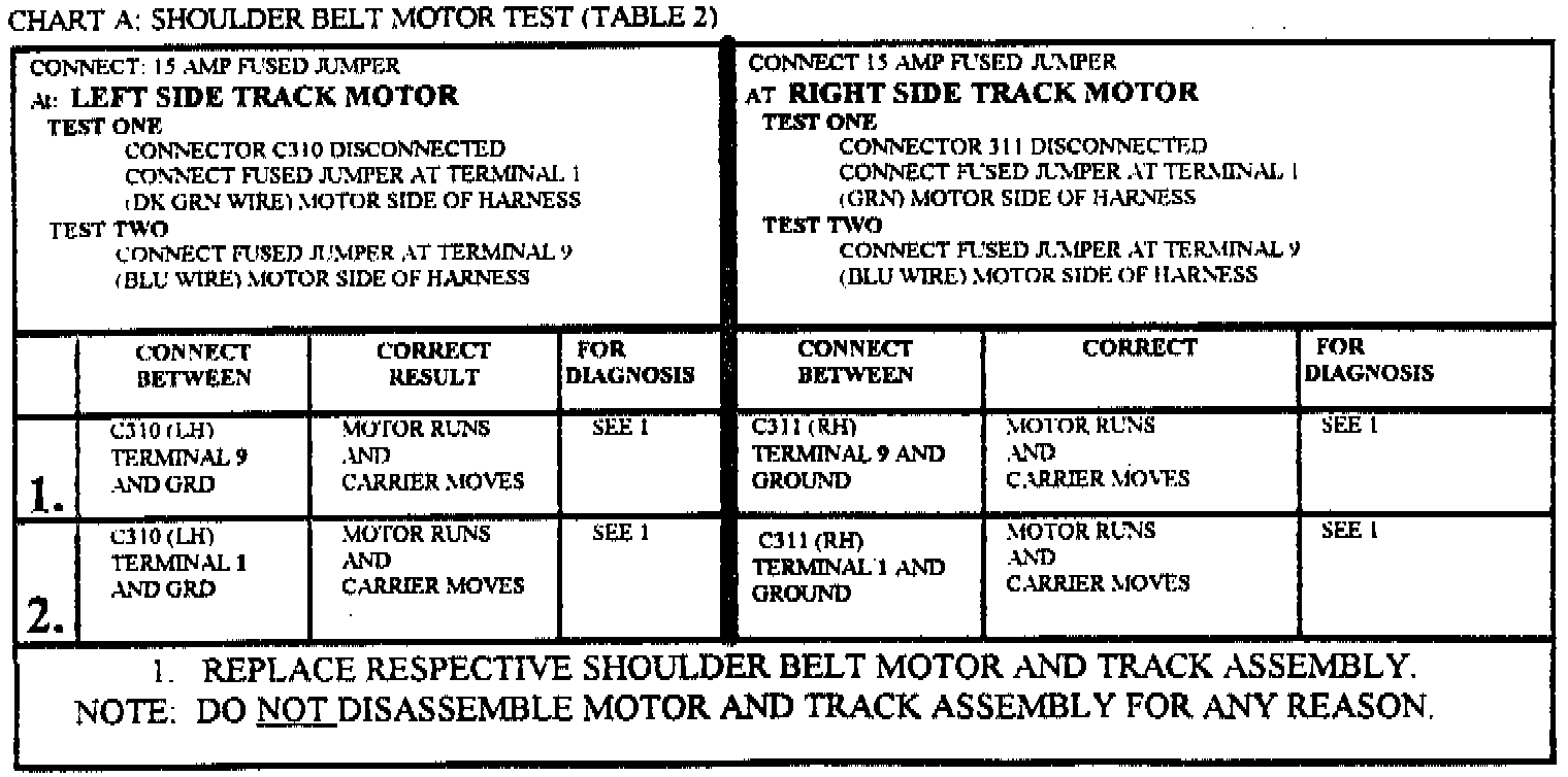 TO ASSURE PROPER FUNCTION OF THE AUTOMATIC SEAT BELT SYSTEM, PERFORM CHART D AFTER ALL REPAIRED ARE COMPLETED