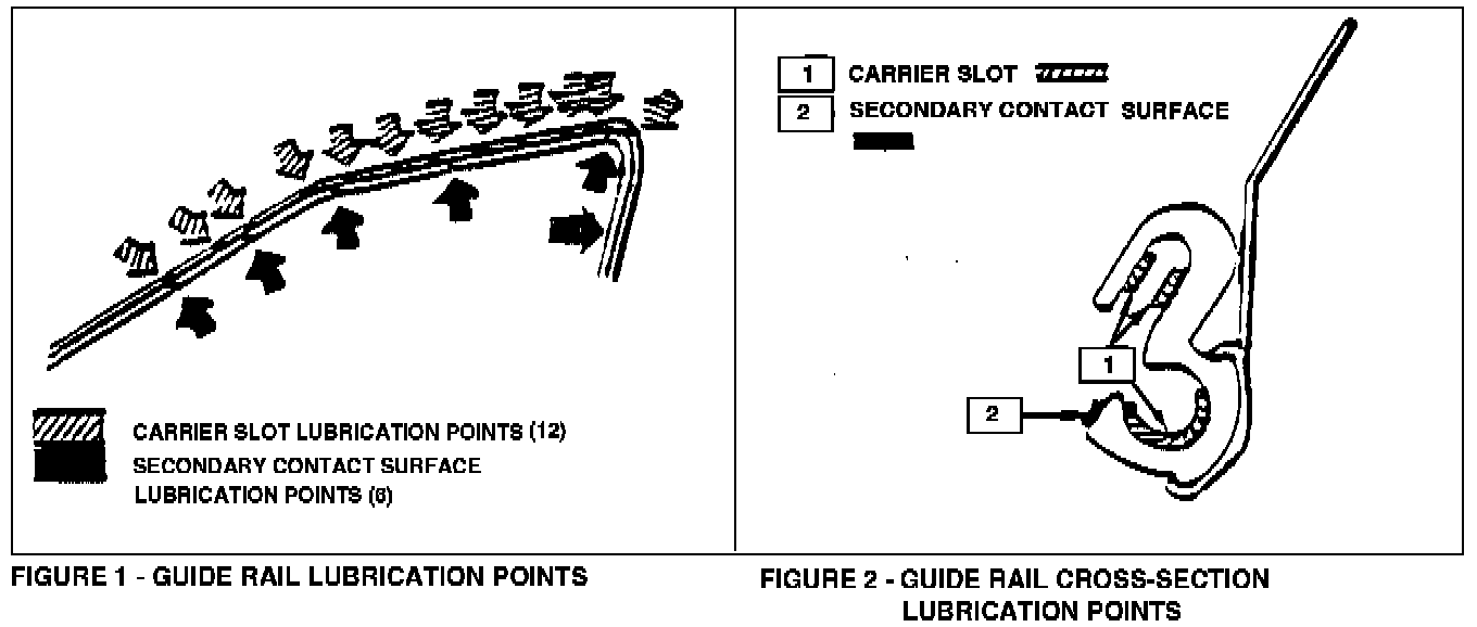 4. Apply a small portion of guide track grease at the 12 points shown in Figure 1 over the length of the carrier slot on the driver's side track rail. Refer to Figure. 2 for a cross-sectional view of the correct lubrication points.
