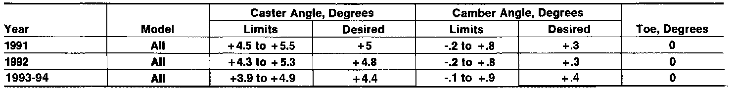 Front Wheel Alignment Specifications: