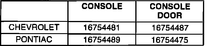 Replace the console and the console door with part numbers listed, following procedures in the Service Manual, Section 8C.
