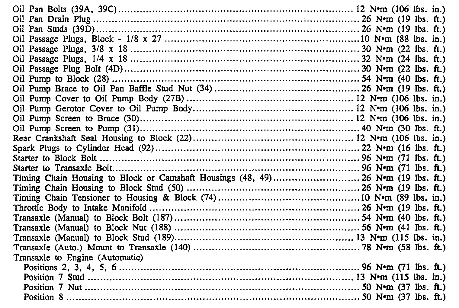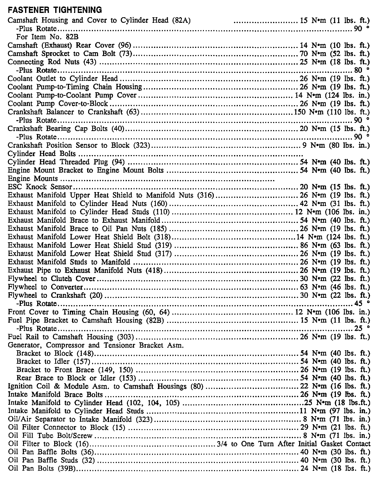 Continued Torque Specifications:
