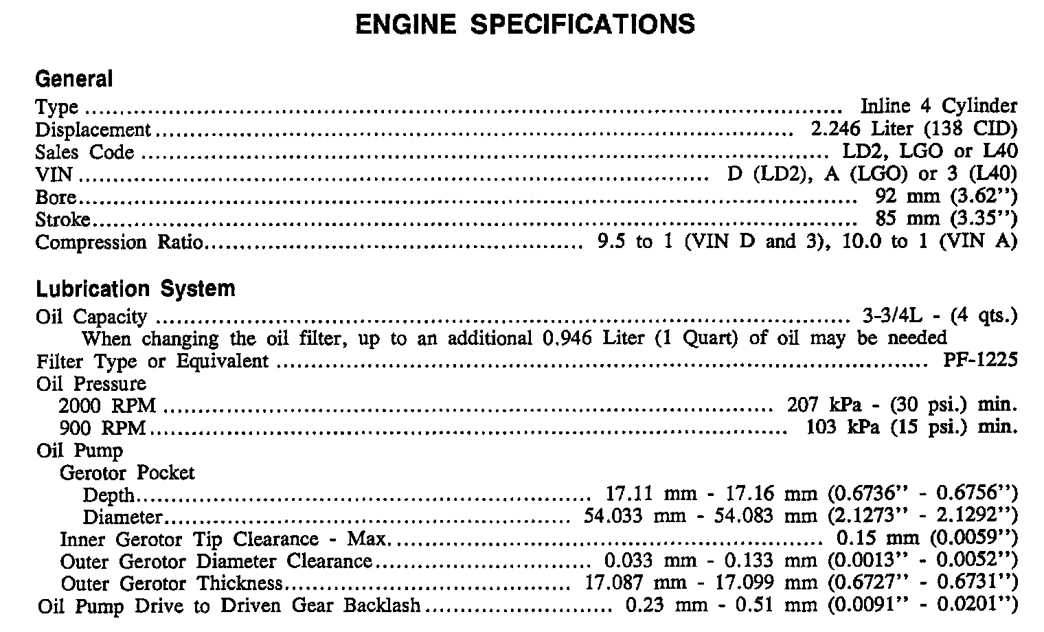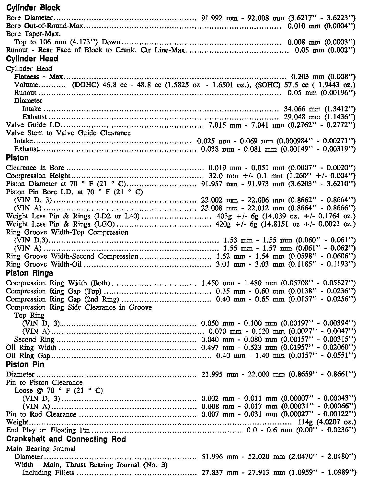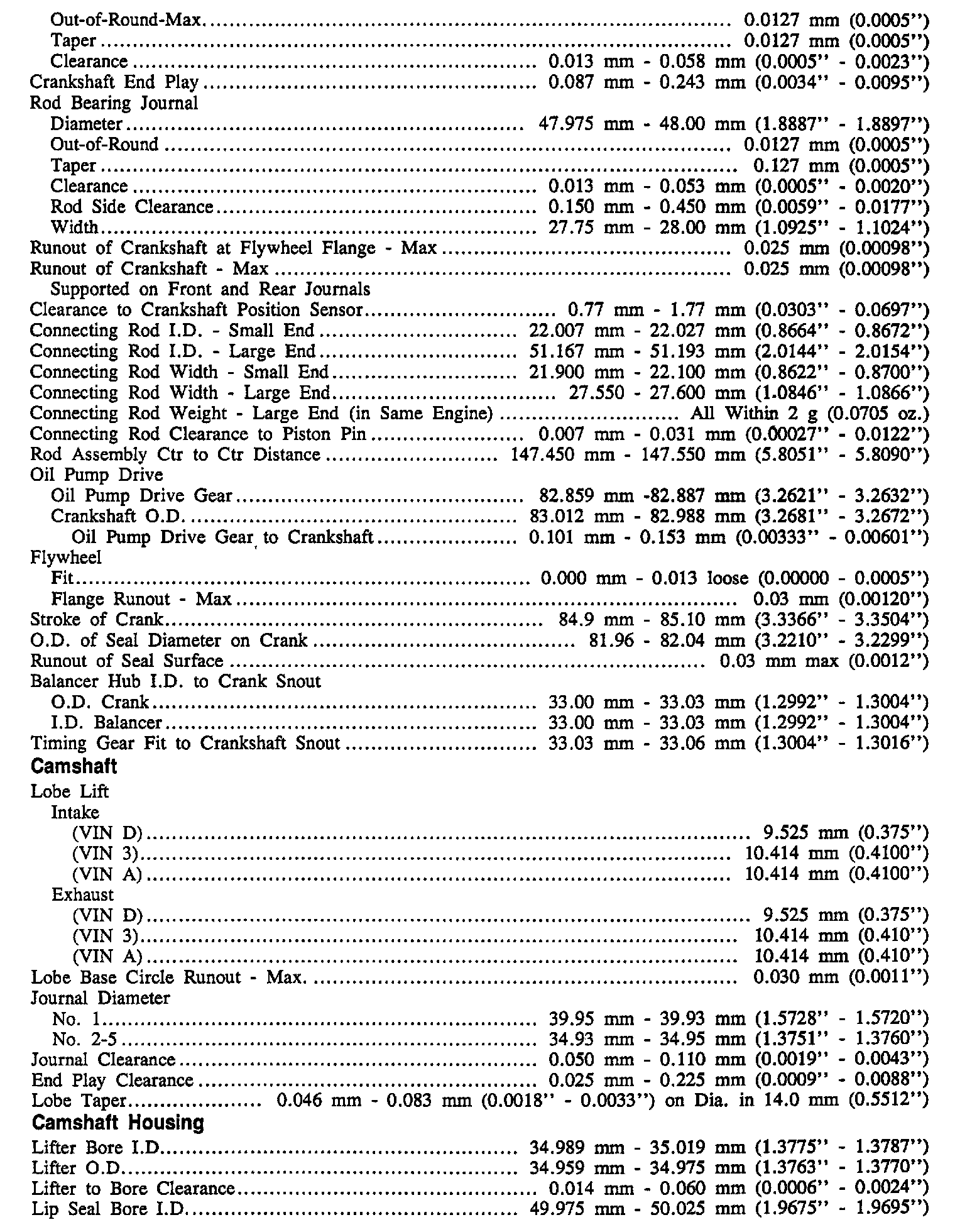 Continued Engine Specifications: