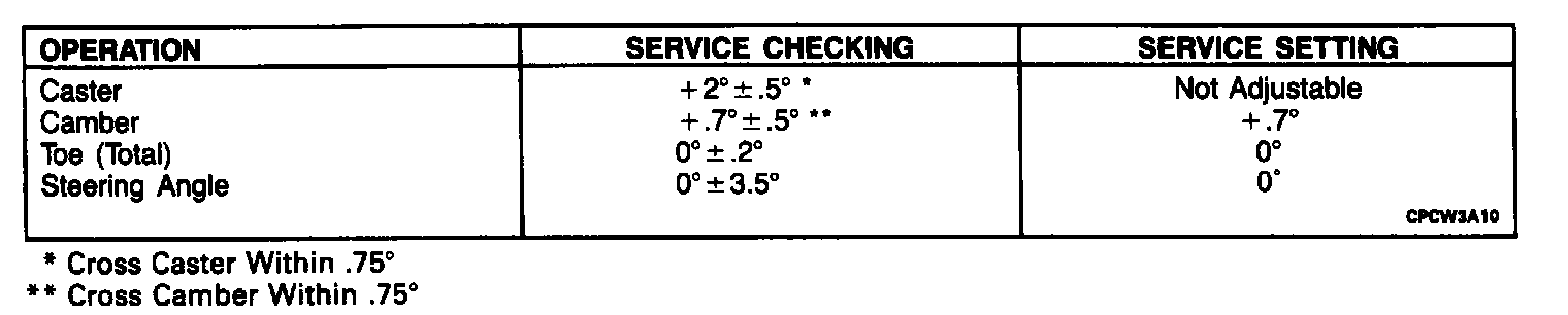 Front Wheel Alignment Specifications: