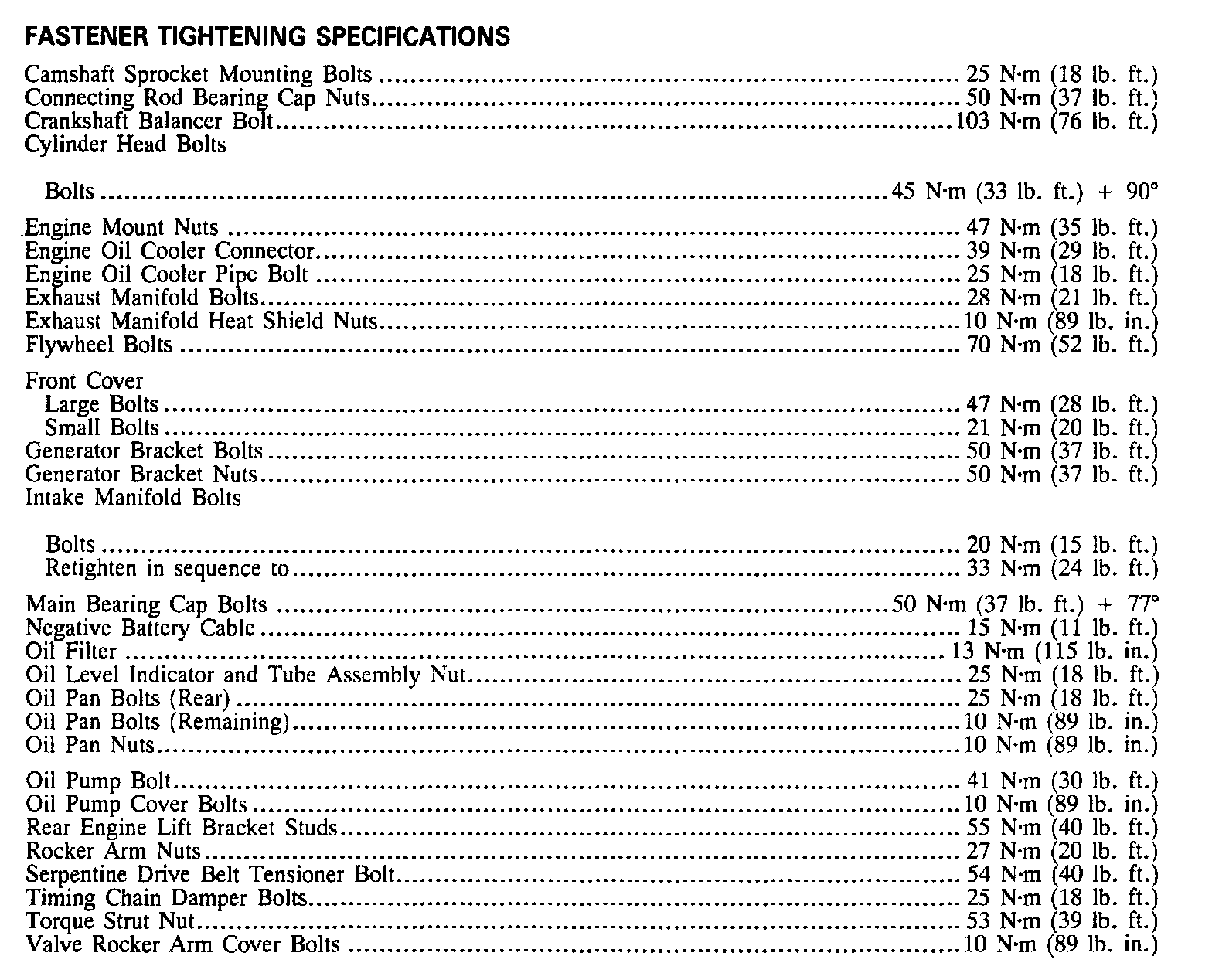 Torque Specifications: